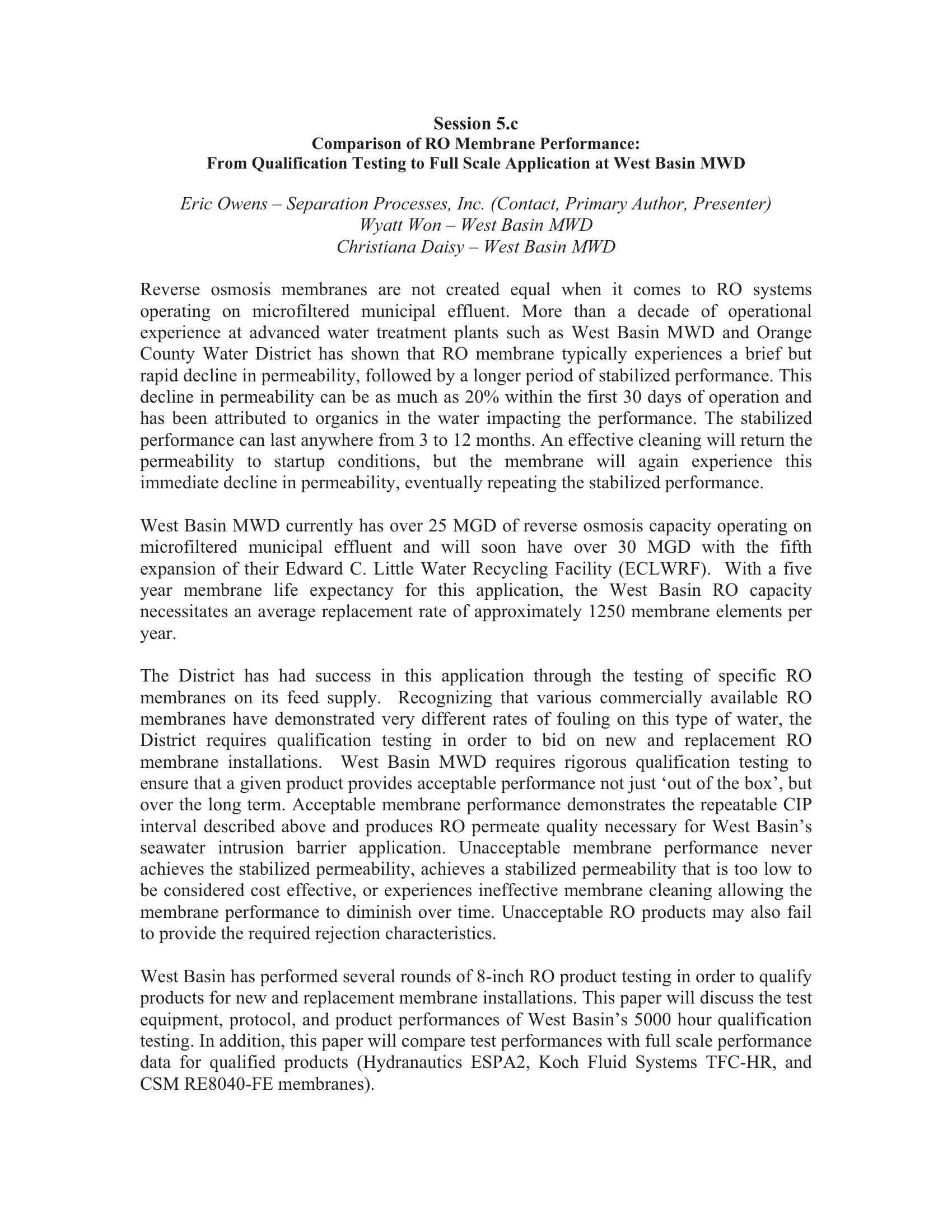 Comparison of RO Membrane Performance: From Qualification Testing to Full Scale Application at West Basin MWD