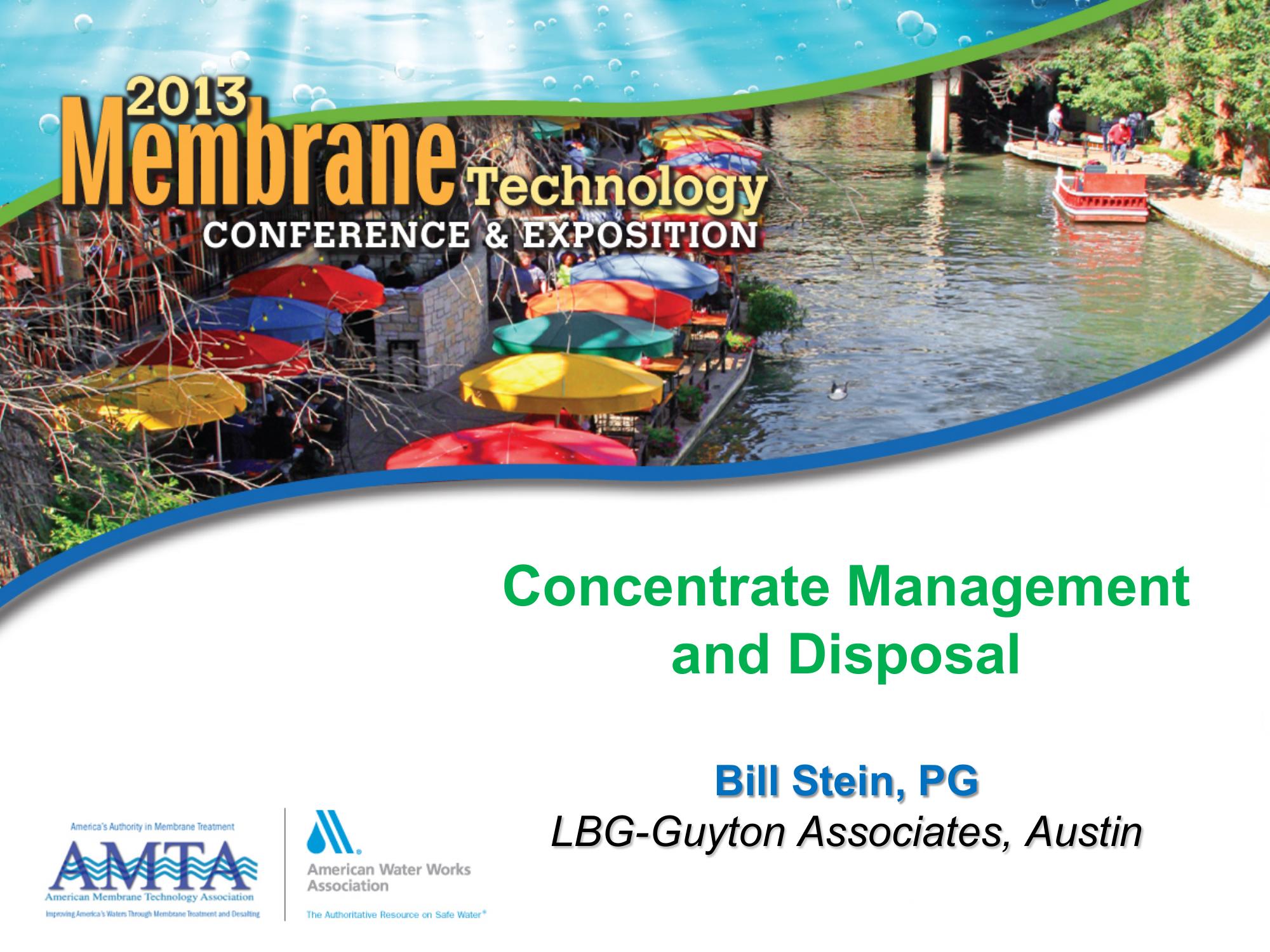 A summary of RO concentrate disposal methods is given, including discharge to WWTP, surface waters, reuse, and injection well. Case studies for El Paso and San Antonio injection well discharge discuss injection well parameters operating within TCEQ guidelines.