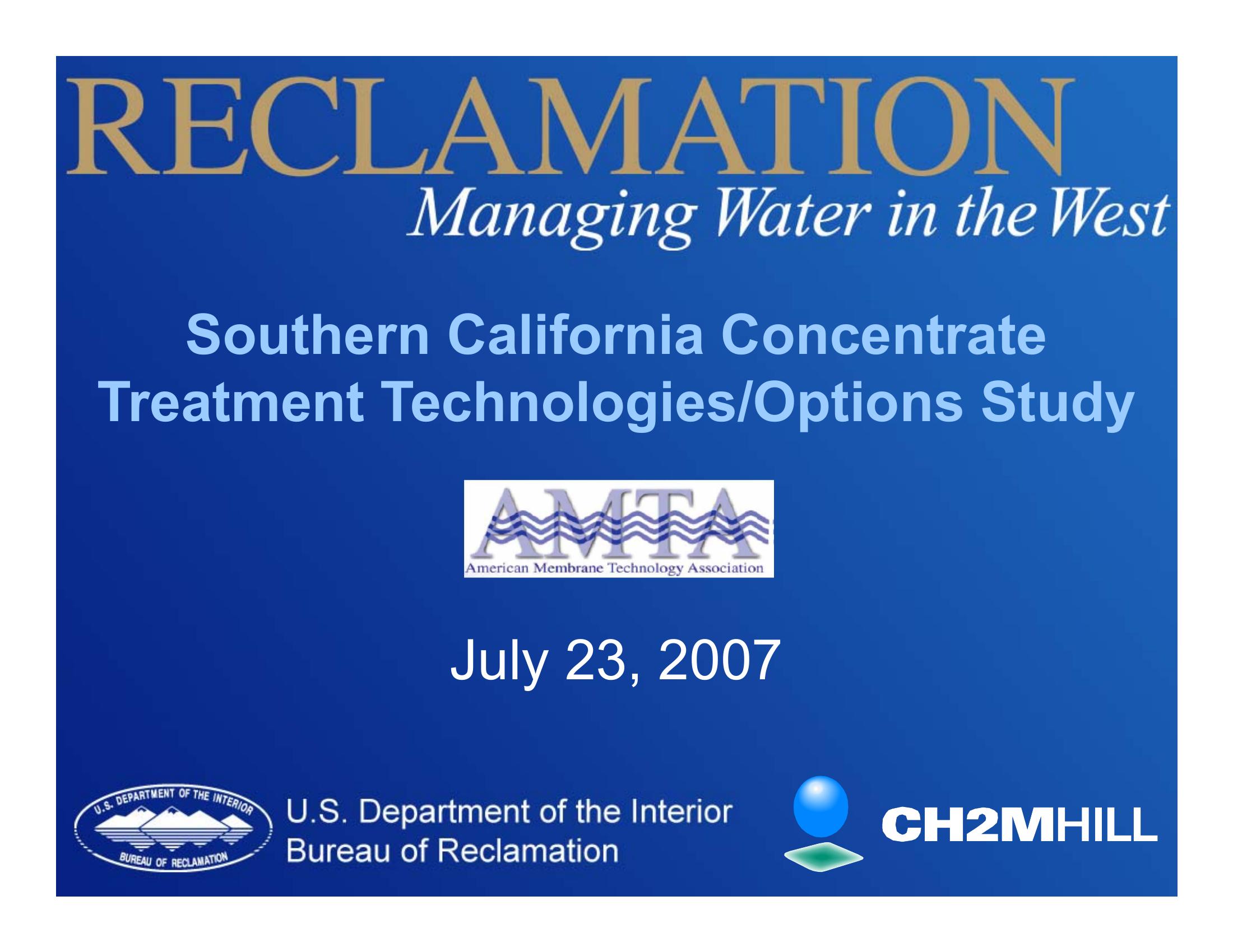 This PowerPoint presentation describes what is the Southern California Water Recycling Projects Initiative and explores possibilities for concentrate disposal and water reuse options.