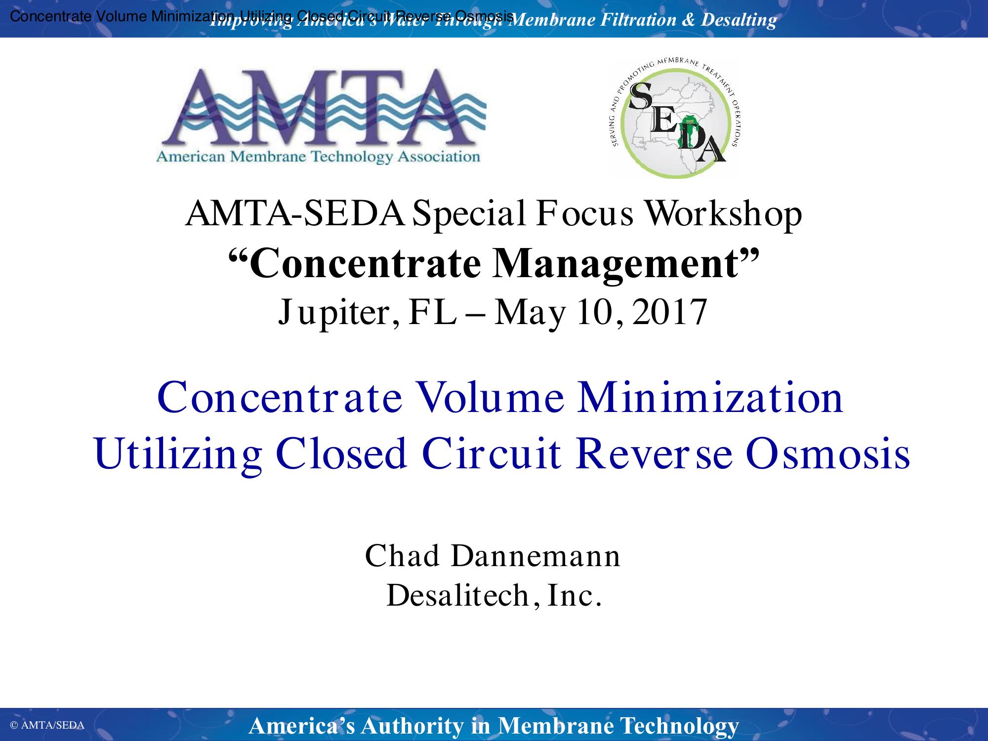 Concentrate Volume Minimization Utilizing Closed Circuit Reverse Osmosis