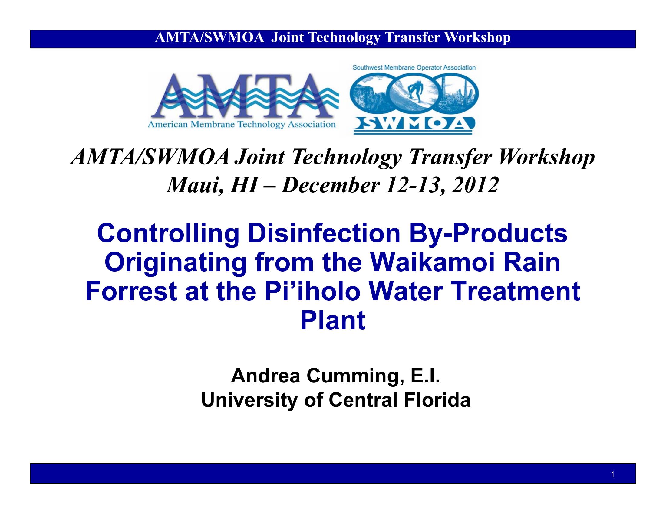 This PowerPoint discusses testing aimed at controlling disinfection by-products originating from the Waikamoi Rain Forrest at the Pi’iholo Water Treatment Plant