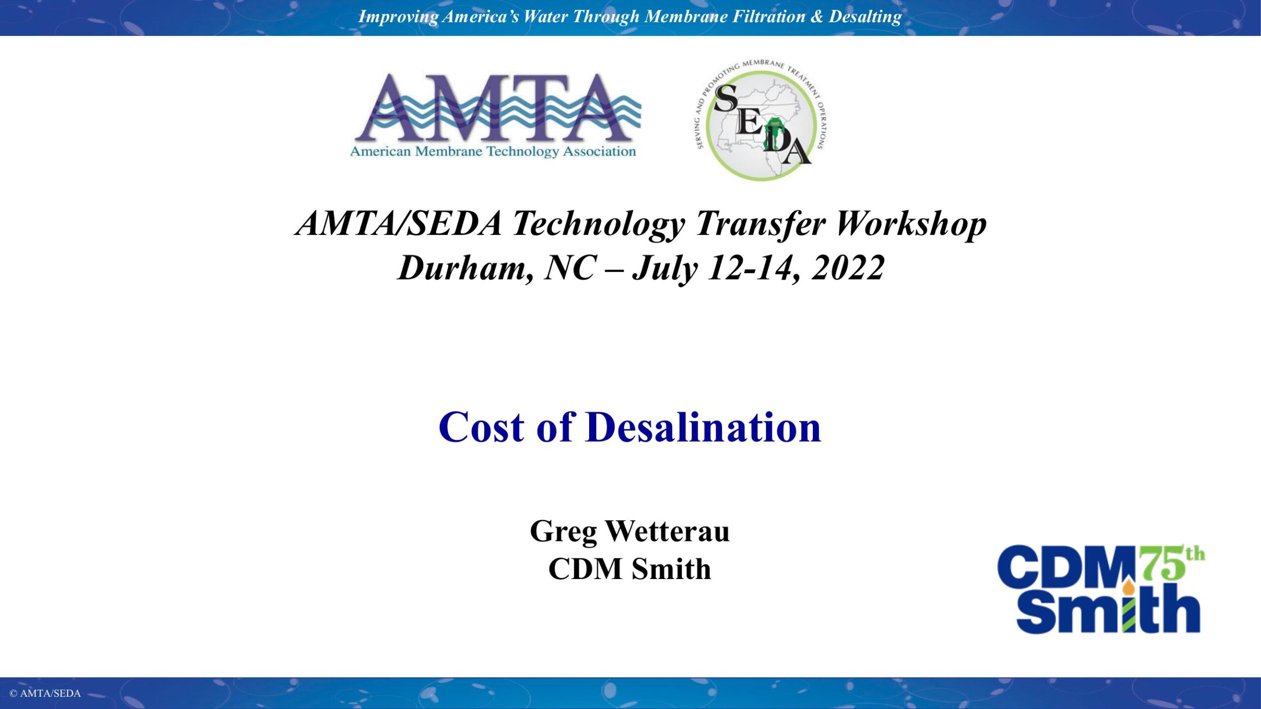 This presentation provides an overview of membrane treatment costs, particularly as they relate to the removal of CECs with membranes. The talk will discuss impacts that influence capital and operating costs, including feed water salinity, pretreatment requirements and brine disposal options. The impact of renewable energy and energy recovery on long term operating costs will also be discussed. Examples case studies will be given to demonstrate how costs come together.