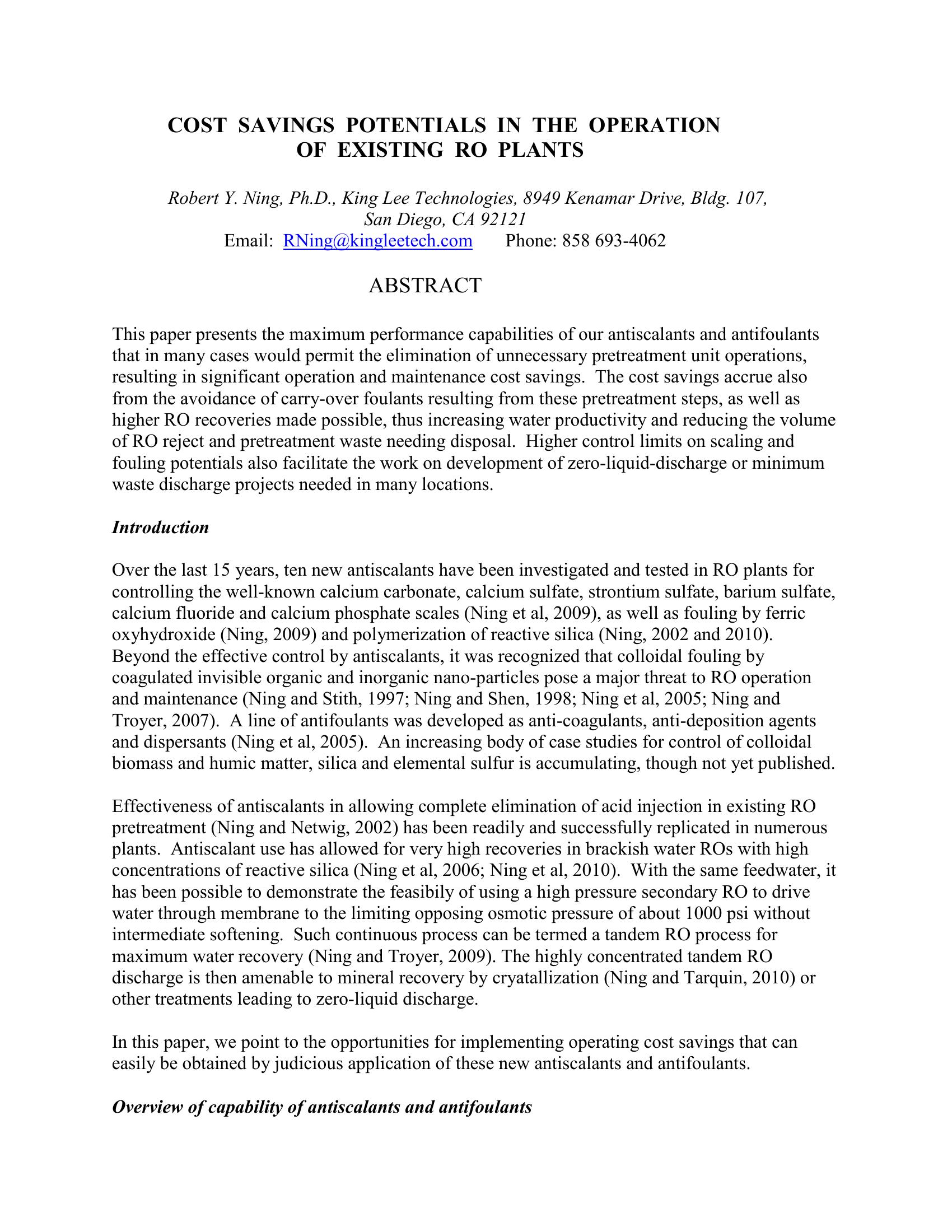 | Keywords | Cost Saving, Potential, RO Plants |