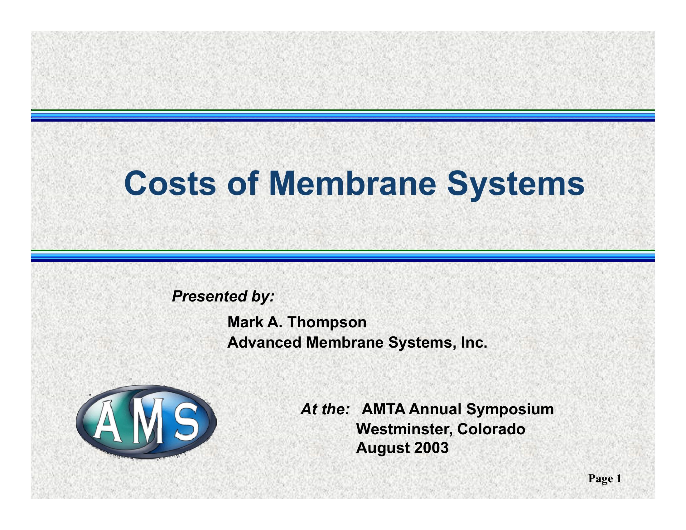 Costs of Membrane Systems