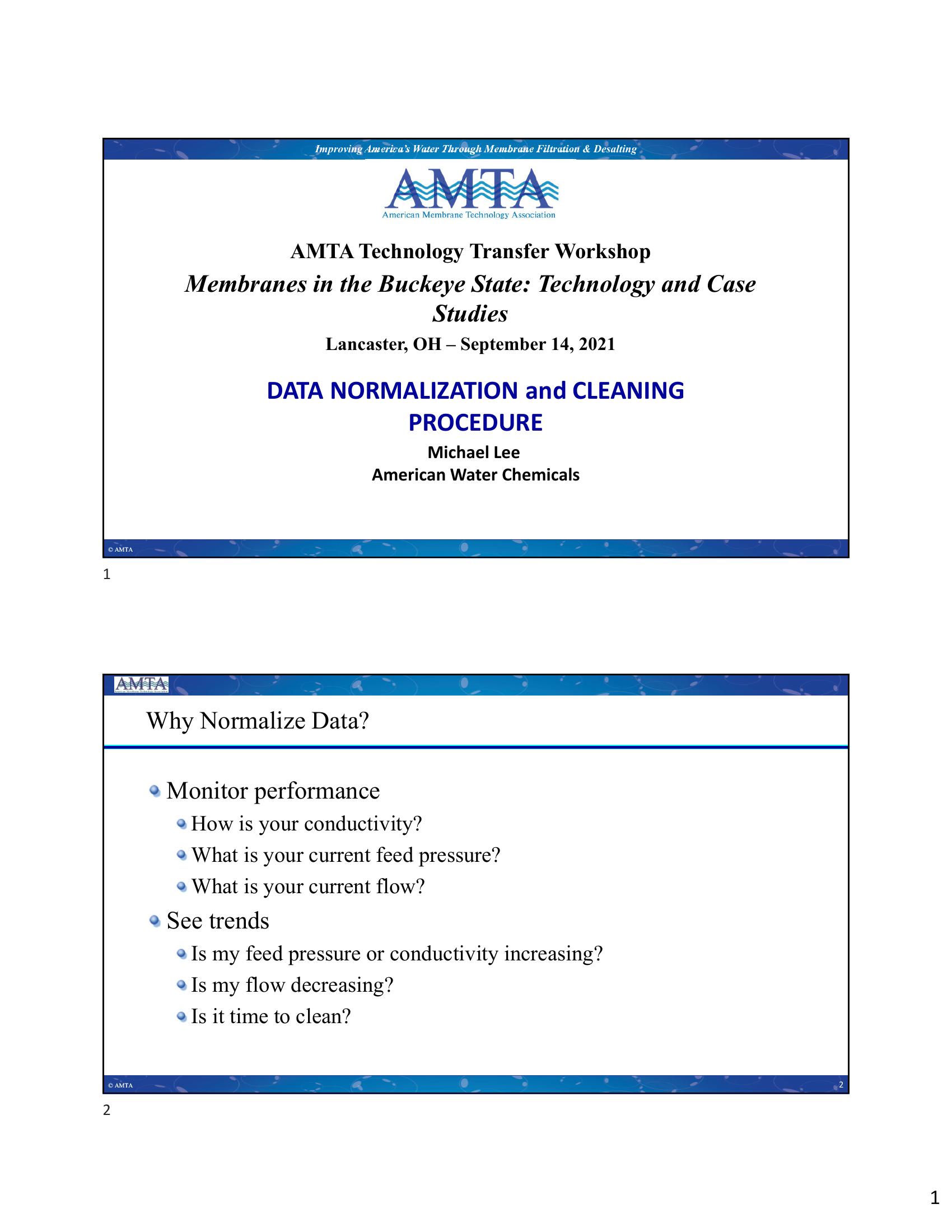 Data Monitoring, Normalization and Membrane Cleaning