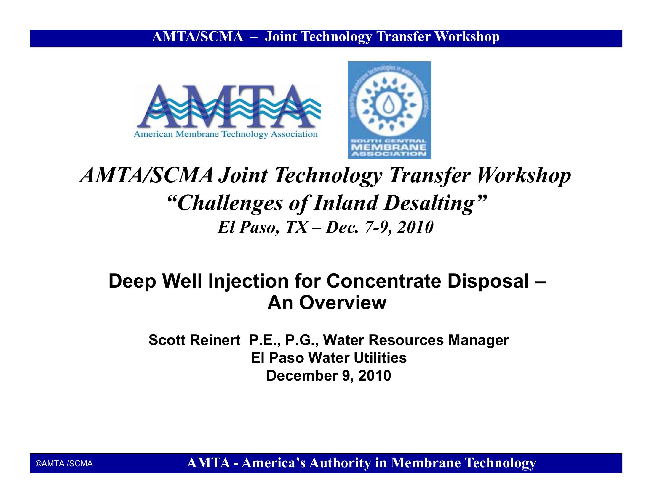 Deep well injection for concentrate disposal. Discussion of site characterization, well construction, surface facilities, regulatory compliance, project and permitting cost.