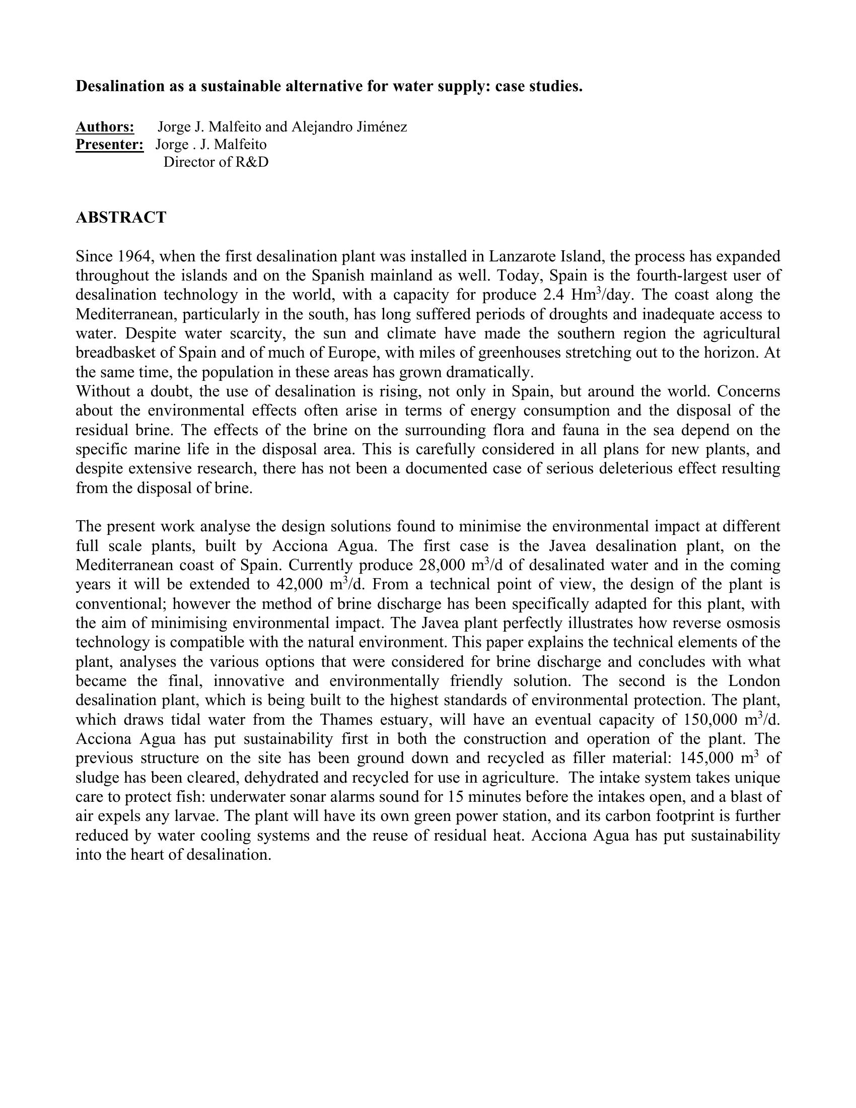 | Keywords | Desalination Case studies, Environmental Desalination |