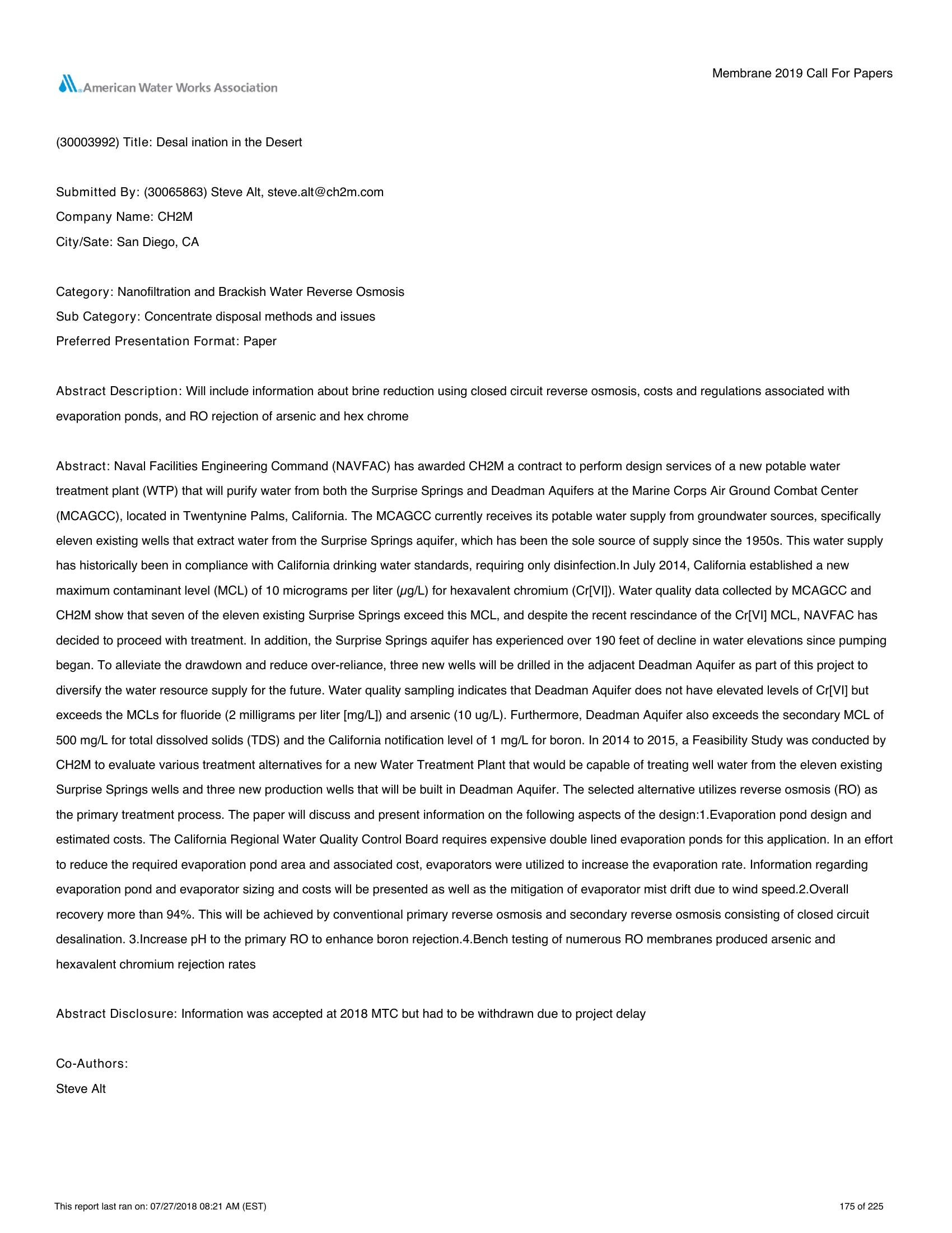 | Keywords | Evaporation Ponds, Closed Circuit Desalination, Arsenic, Boron, Hex Chrome |