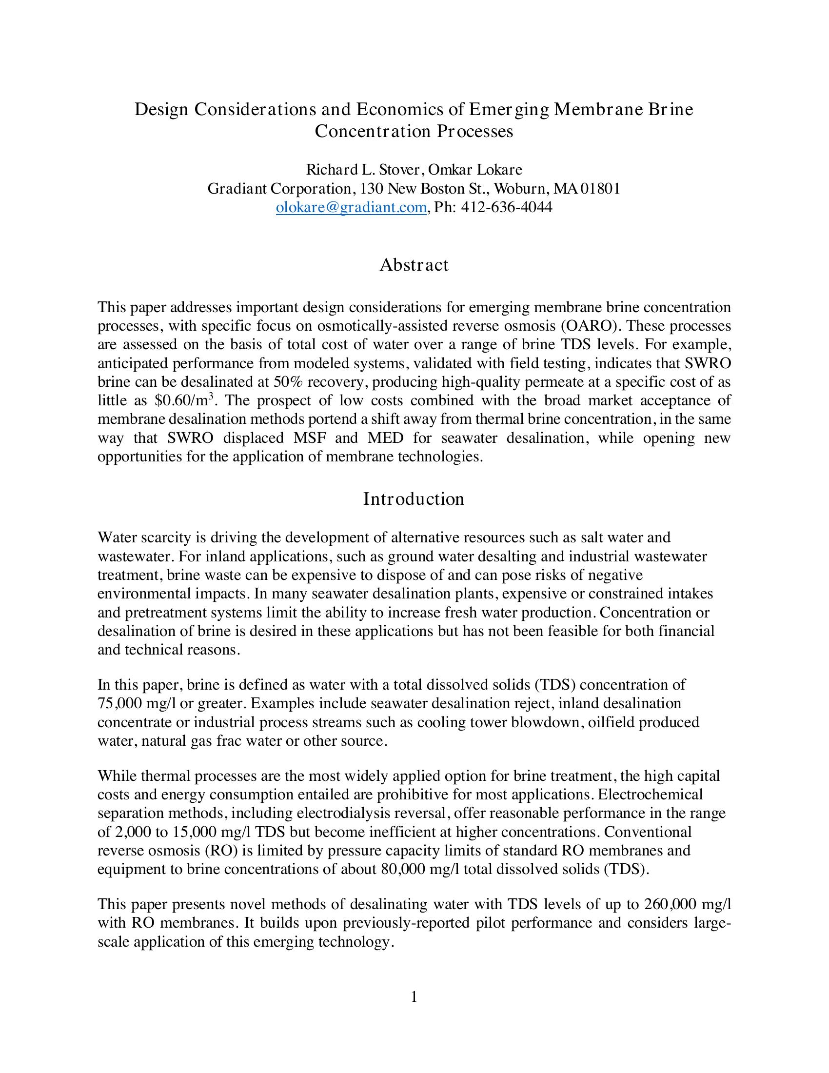 | Keywords | Brine Concentration, SWRO, TDS levels |