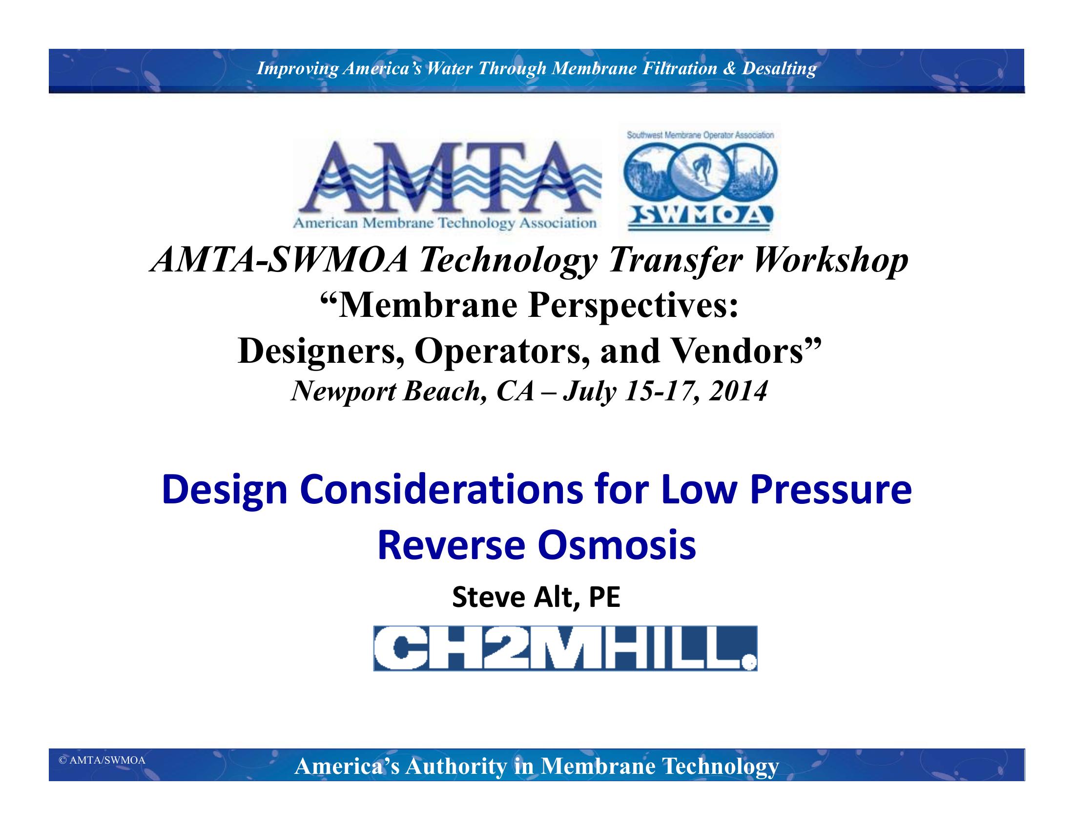 Design Considerations for Low Pressure Reverse Osmosis