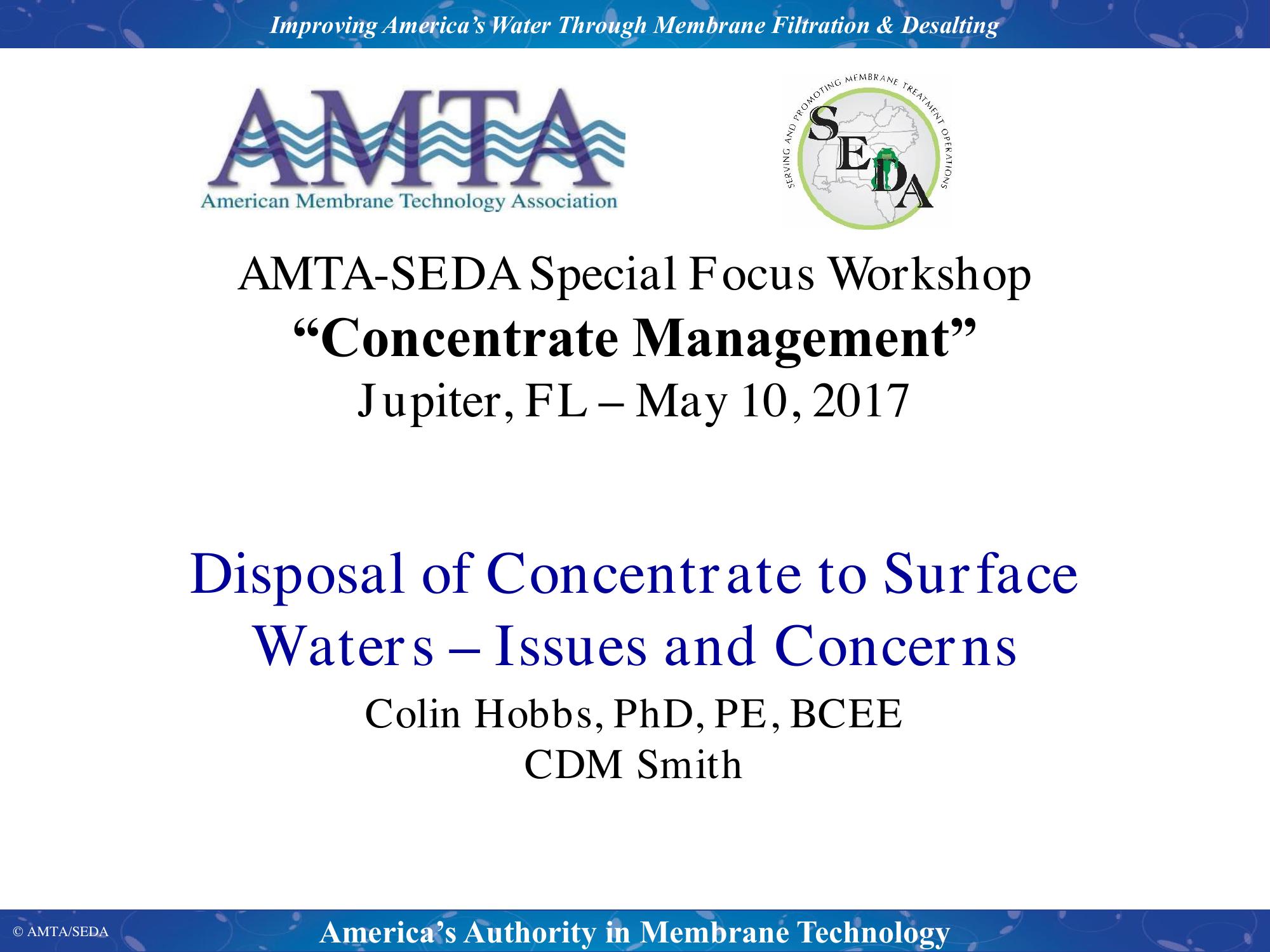 Disposal of Concentrate to Surface Waters – Issues and Concerns