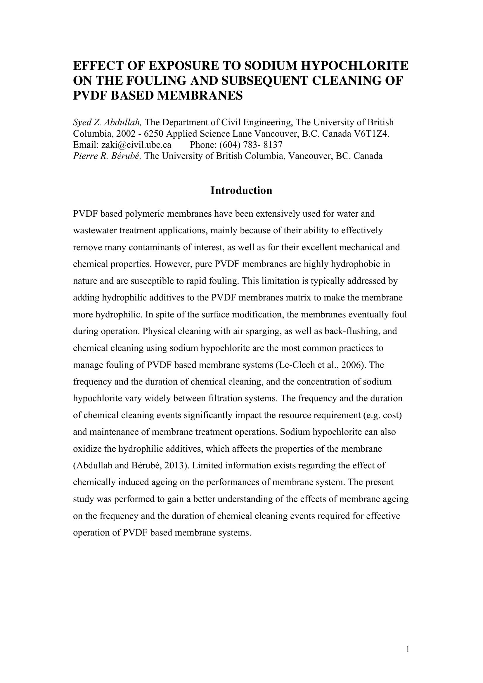 | Keywords | Hypochlorite, Cleaning, PVDF, hydrophobic |