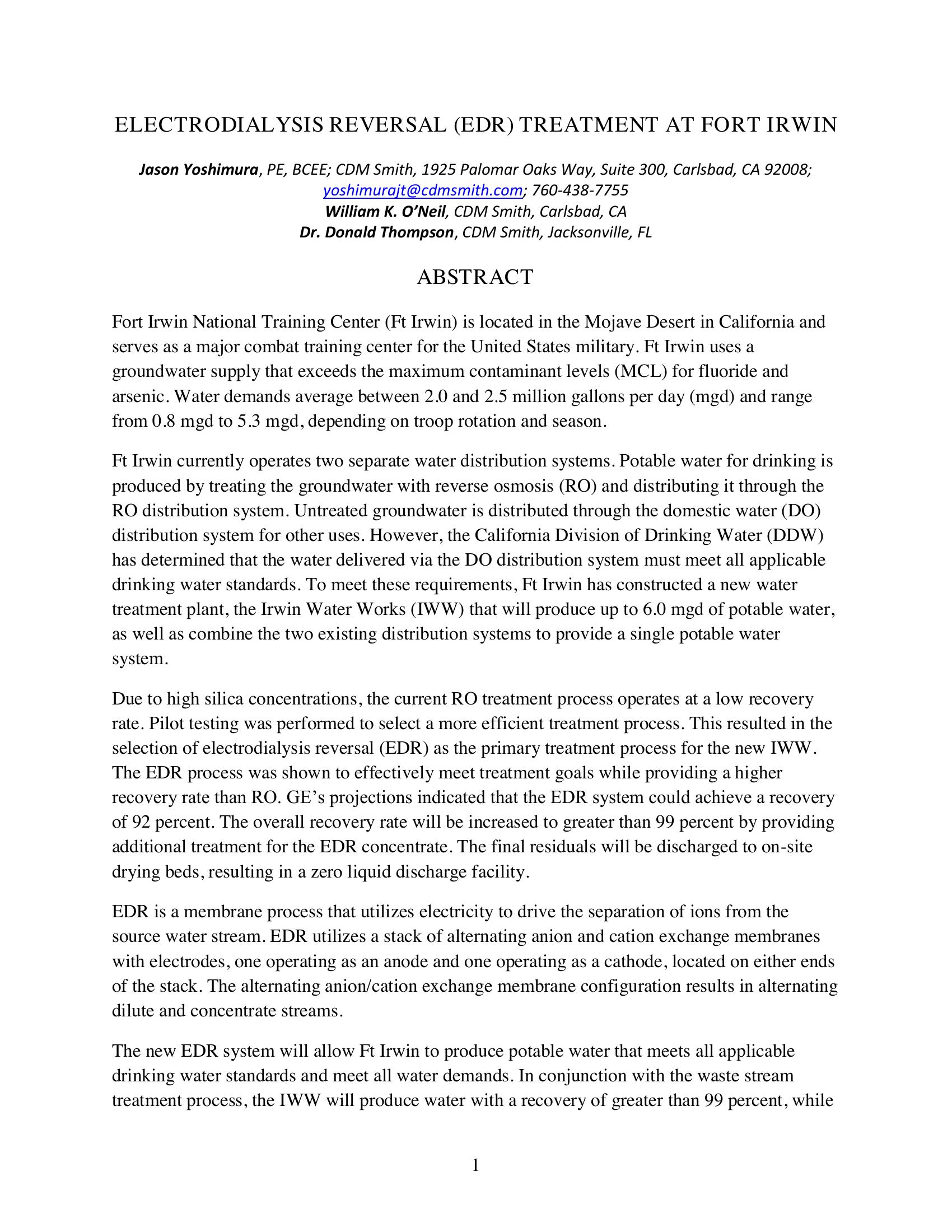Electrodialysis Reversal (EDR) Treatment at Fort Irwin