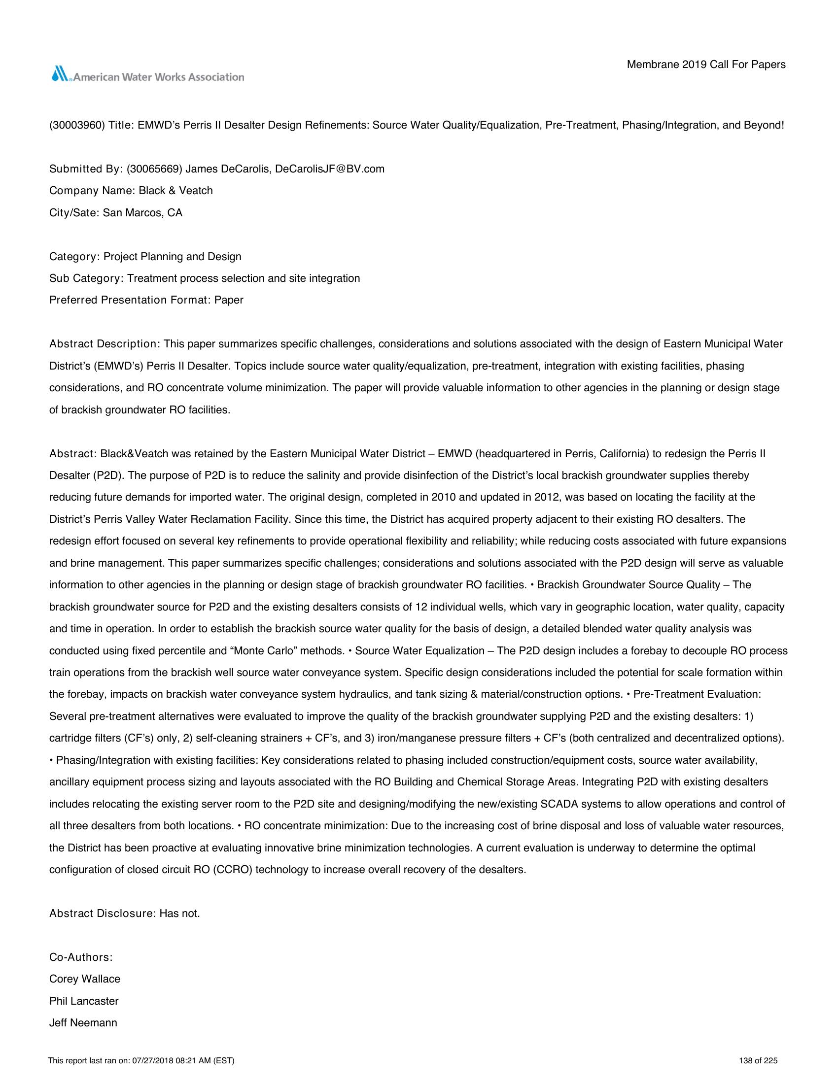 EMWD?s Perris II Desalter Design Refinements: Source Water Quality/Equalization, Pre-Treatment, Phasing/Integration, and Beyond!