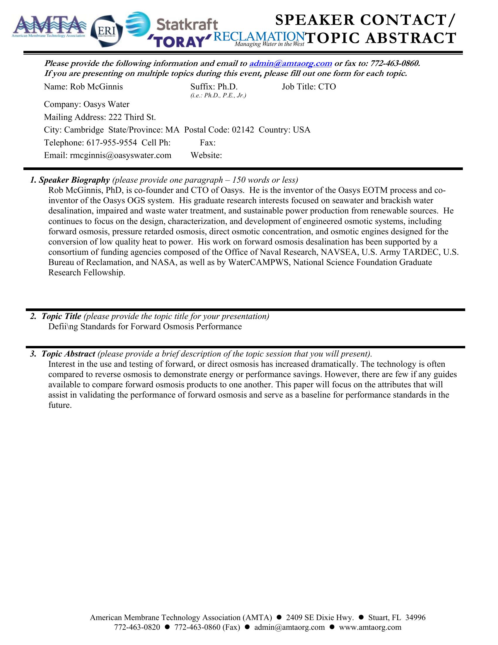 | Keywords | forward osmosis, pressure retarded osmosis |