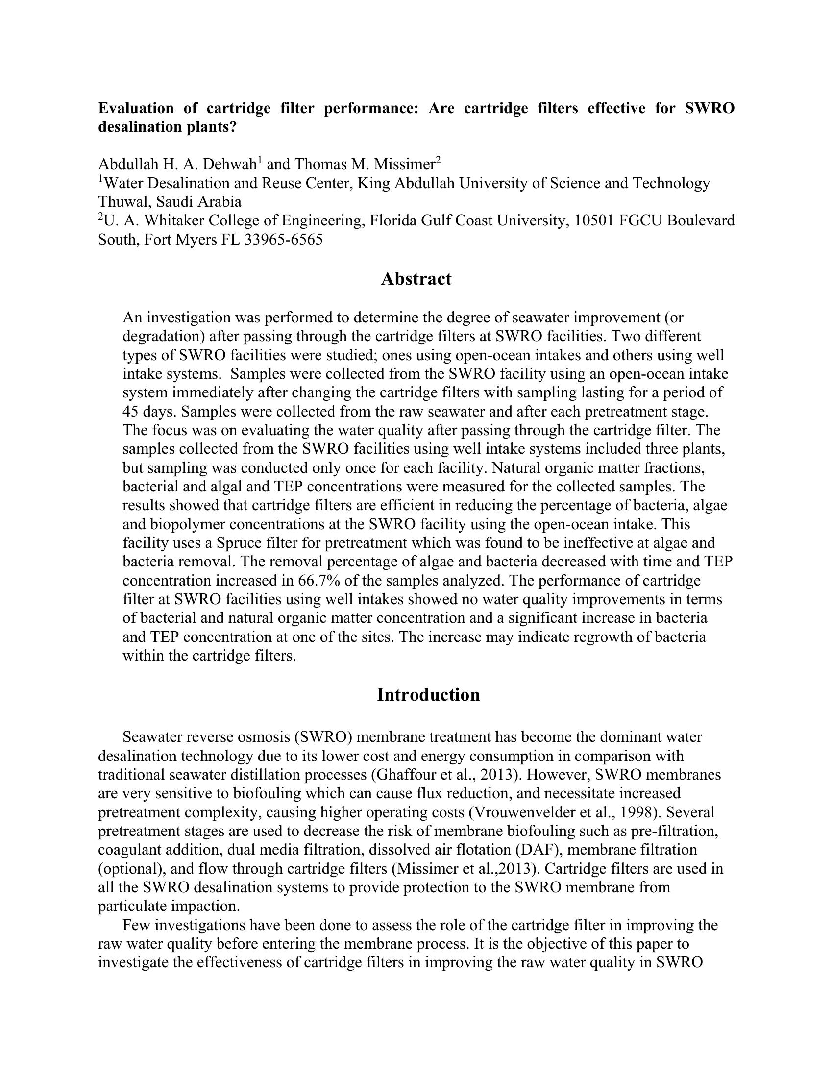| Keywords | Seawater Reverse Osmosis (SWRO), cartridge filters |