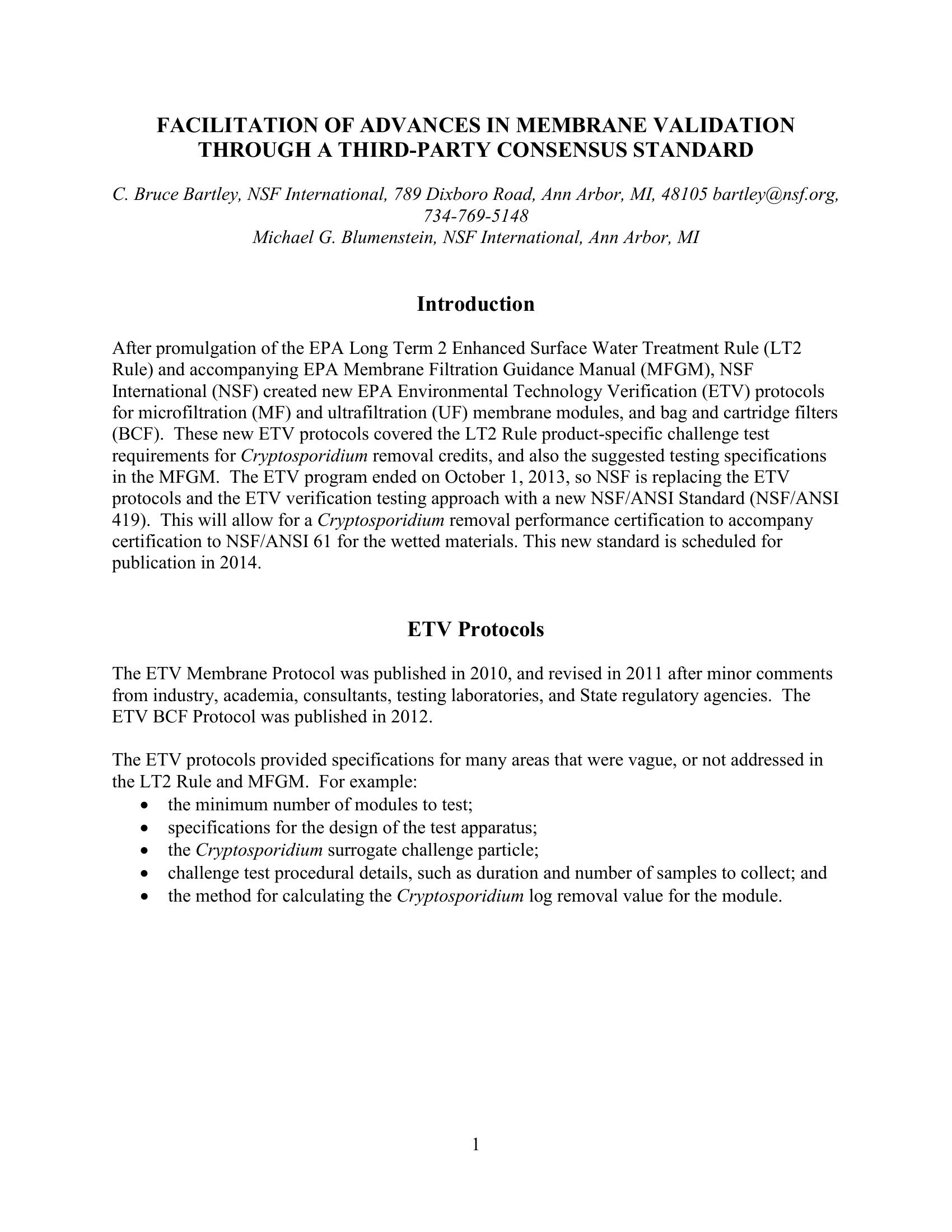 The EPA sponsored regulations for testing the integrity of UF/MF membranes expired in 2013 and have been replaced with NSF/ANSI Standard 419. The standard provides more specific testing requirements and has the possibility of being updated annually to remain current with the industry. Standard 419 does not apply to RO/NF membranes.