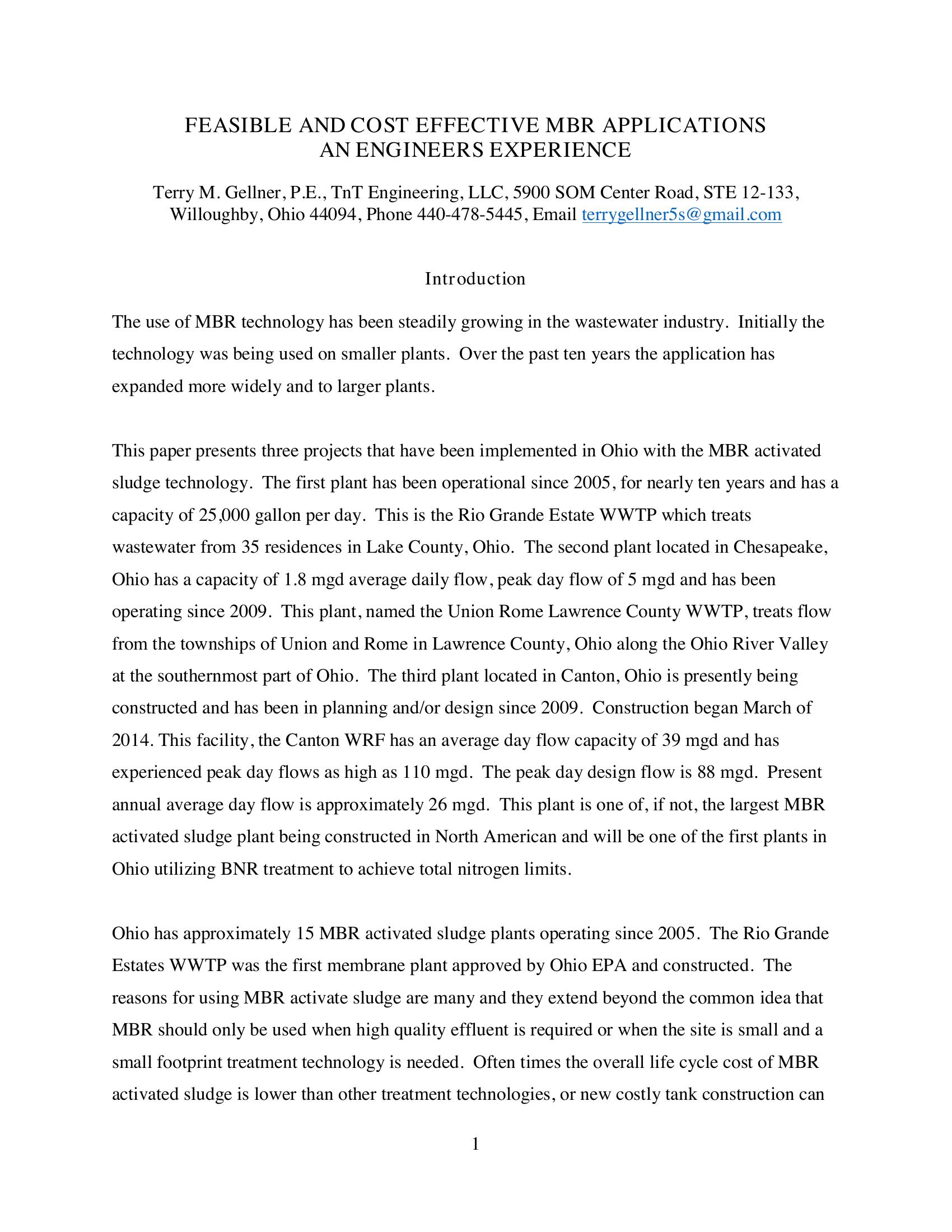 Feasible and Cost Effective MBR Applications – An Engineers Experience