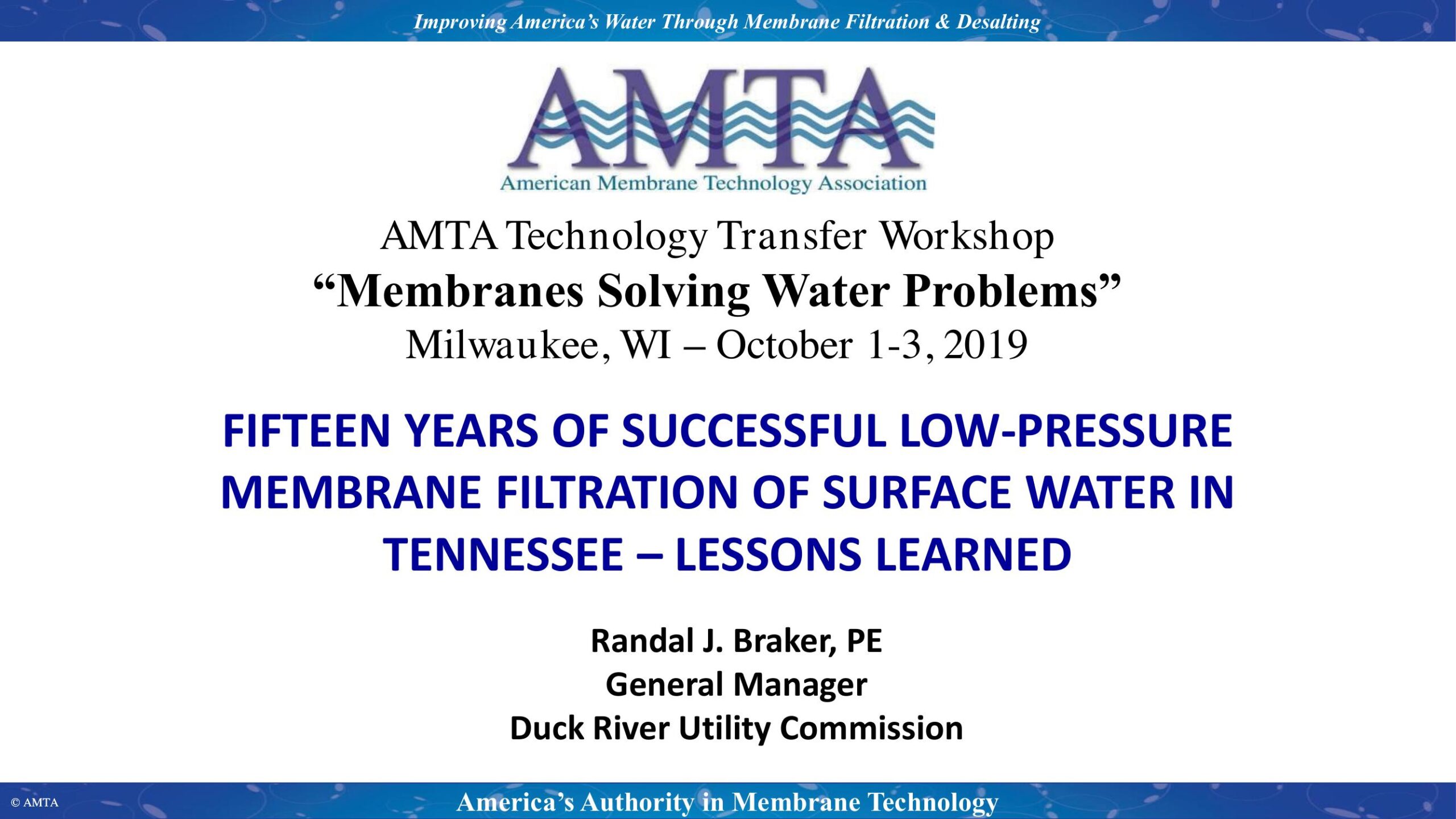 Fifteen Years of Successful Low-Pressure Membrane Filtration of Surface Water in Tennessee – Lessons Learned
