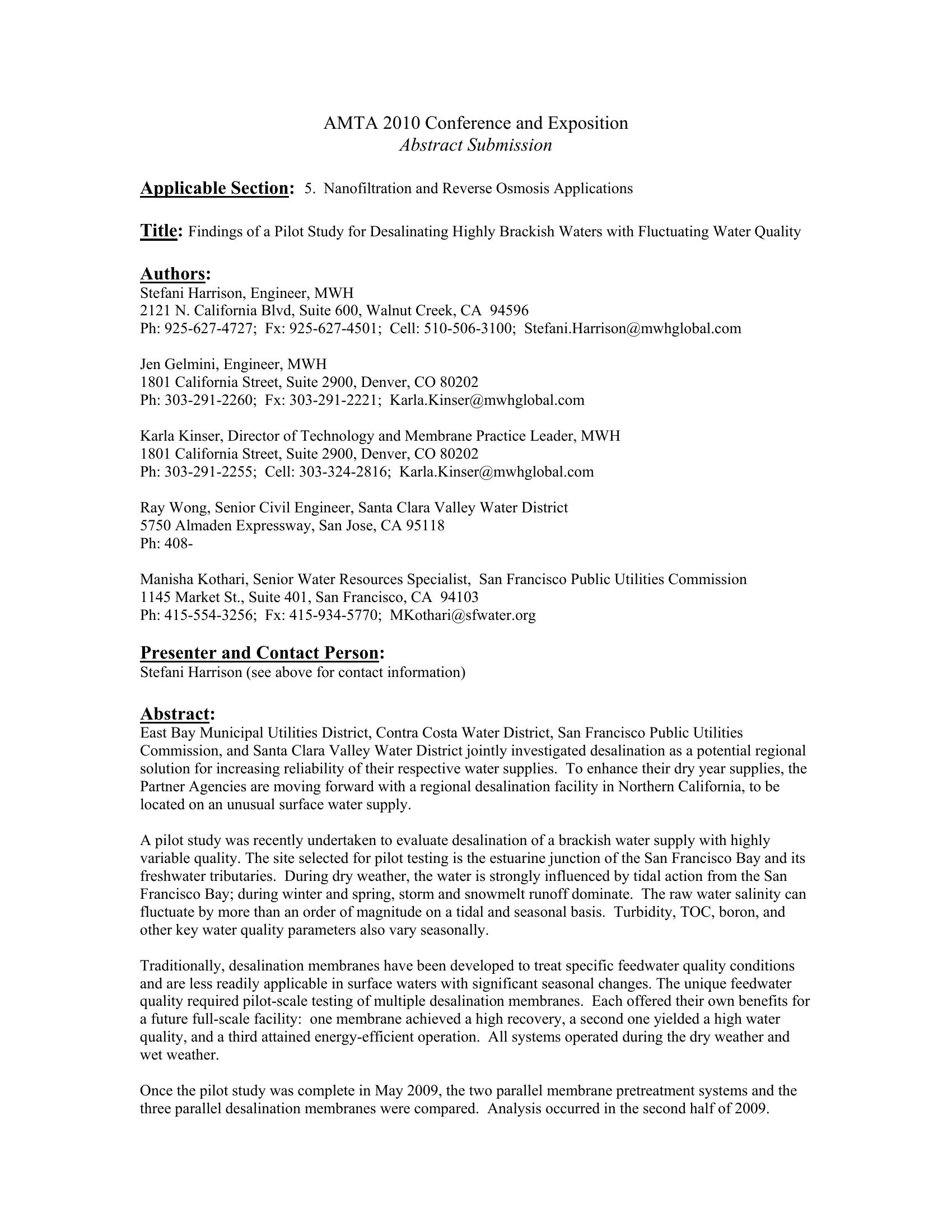 | Keywords | pilot testing, reverse osmosis, nanofiltration, Mallard Slough Pump Station |