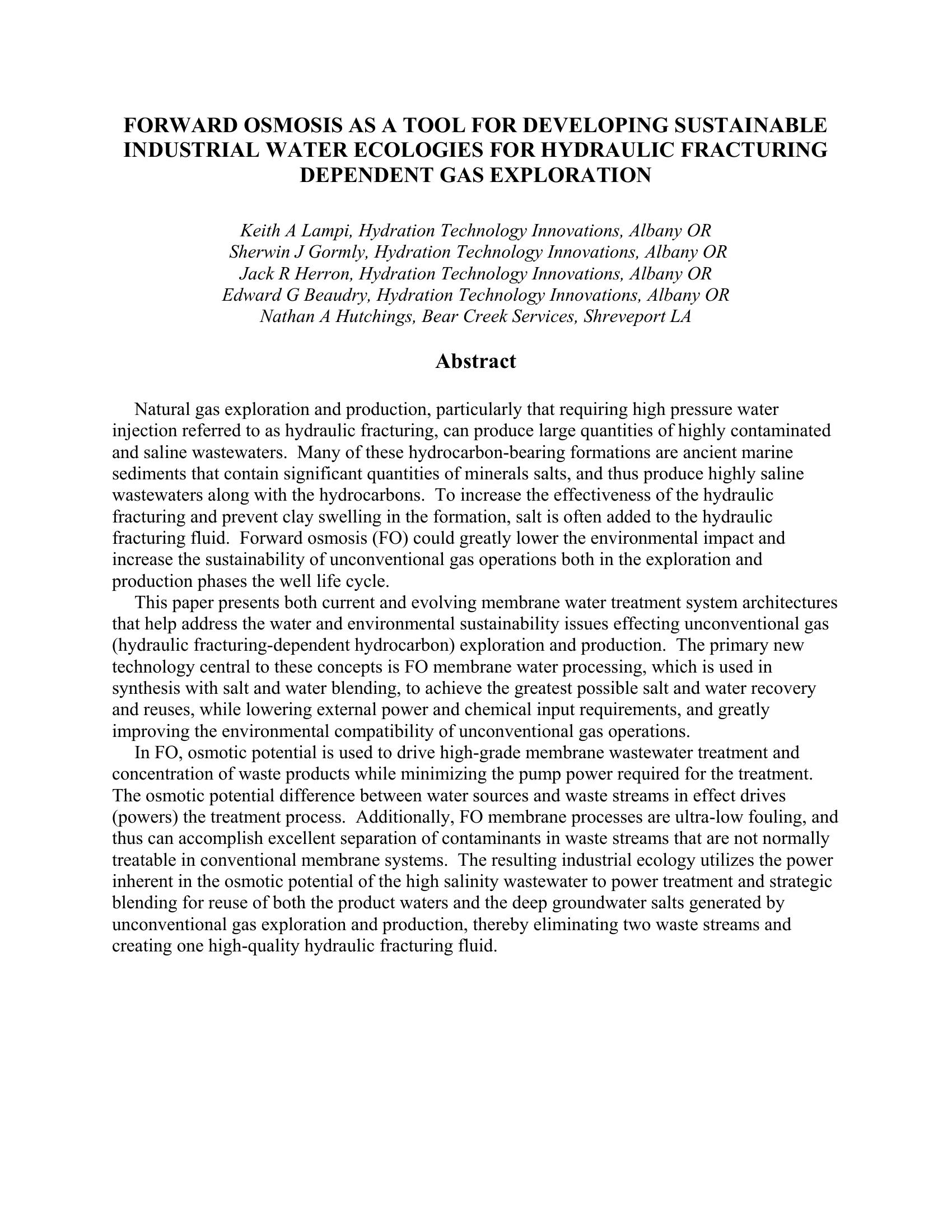 | Keywords | Forward Osmosis (FO), Hydraulic Fracturing |