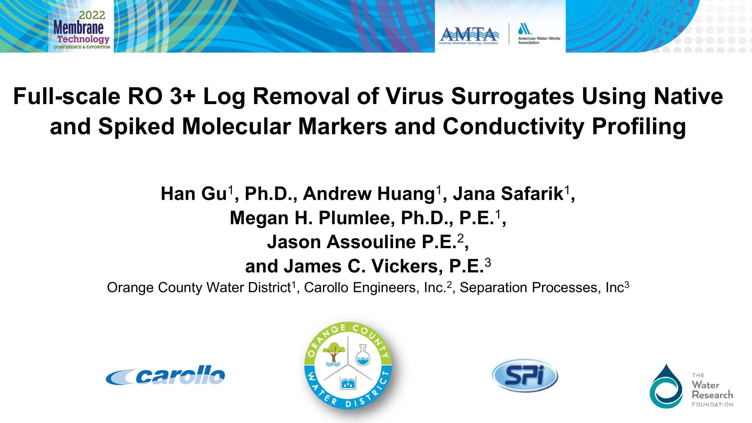 Full-Scale RO 3+ Log Removal of Virus Surrogates Using Native and Spiked Molecular Markers and Condusctivity Profiling
