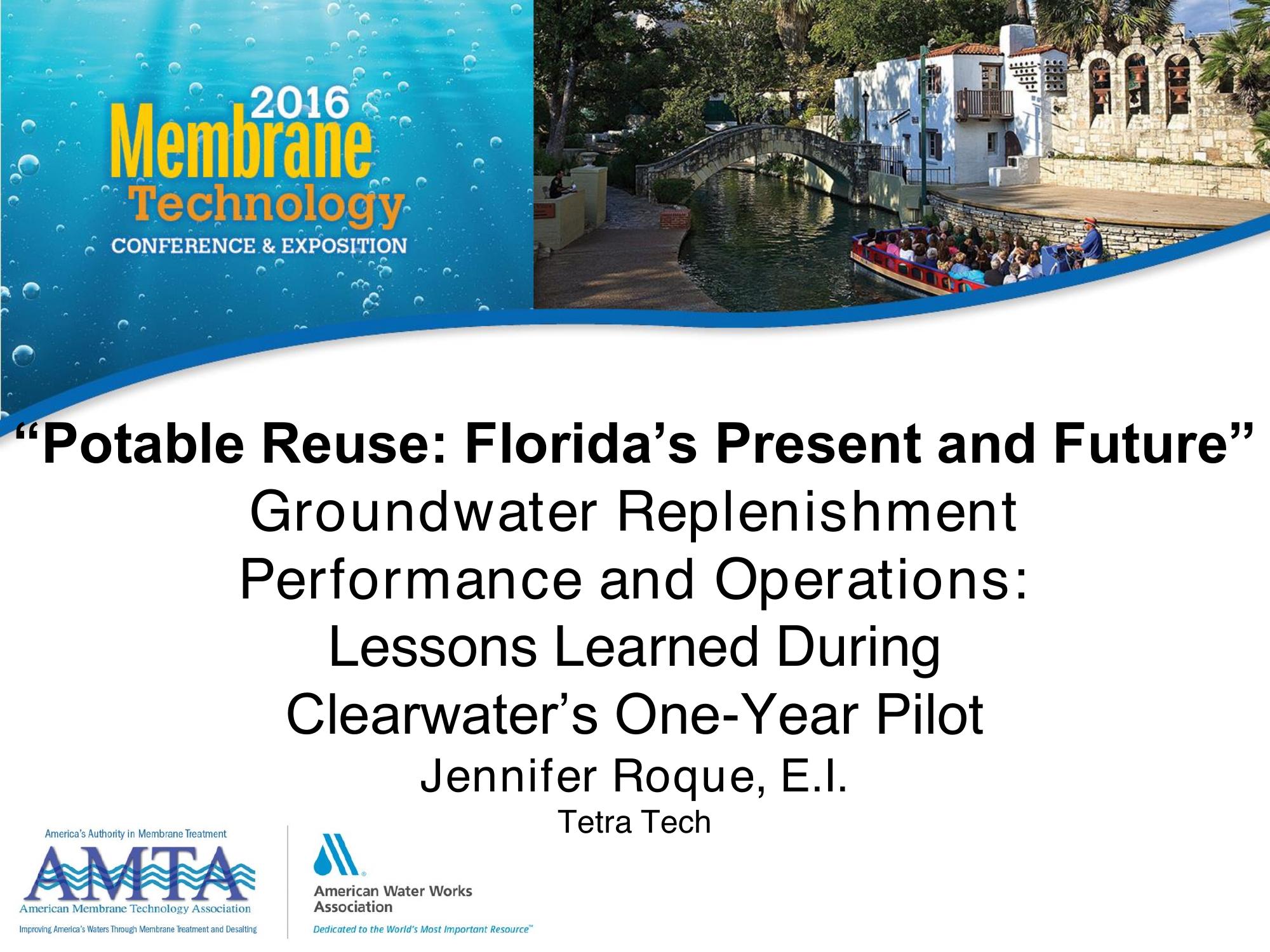 Groundwater Replenishment Performance and Operations: Lessons Learned During Clearwater’s One-Year Pilot