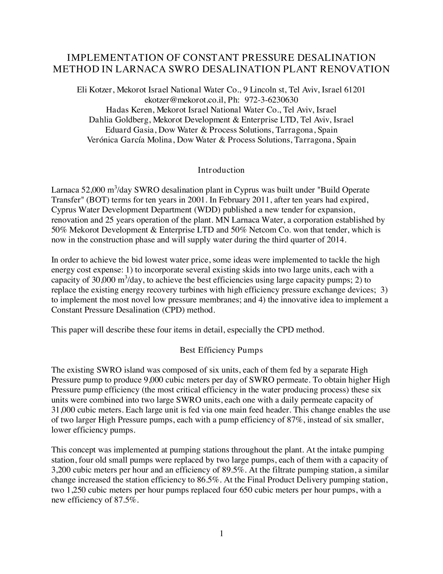 Implementation of Constant Pressure Desalination Method in Larnaca SWRO Desalination Plant Renovation