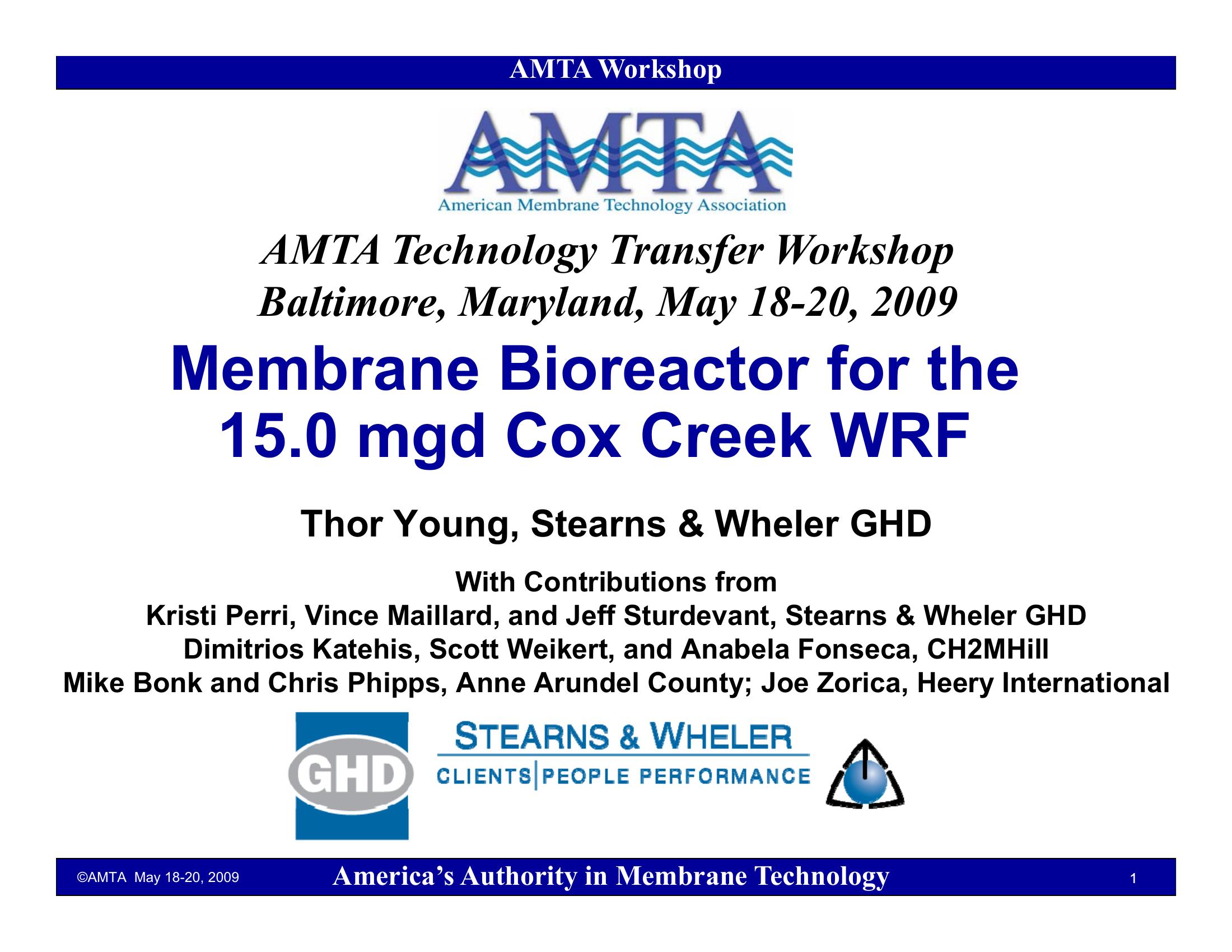 This PowerPoint describes the design of a Membrane Bioreactor for the 15.0 mgd Cox Creek WRF