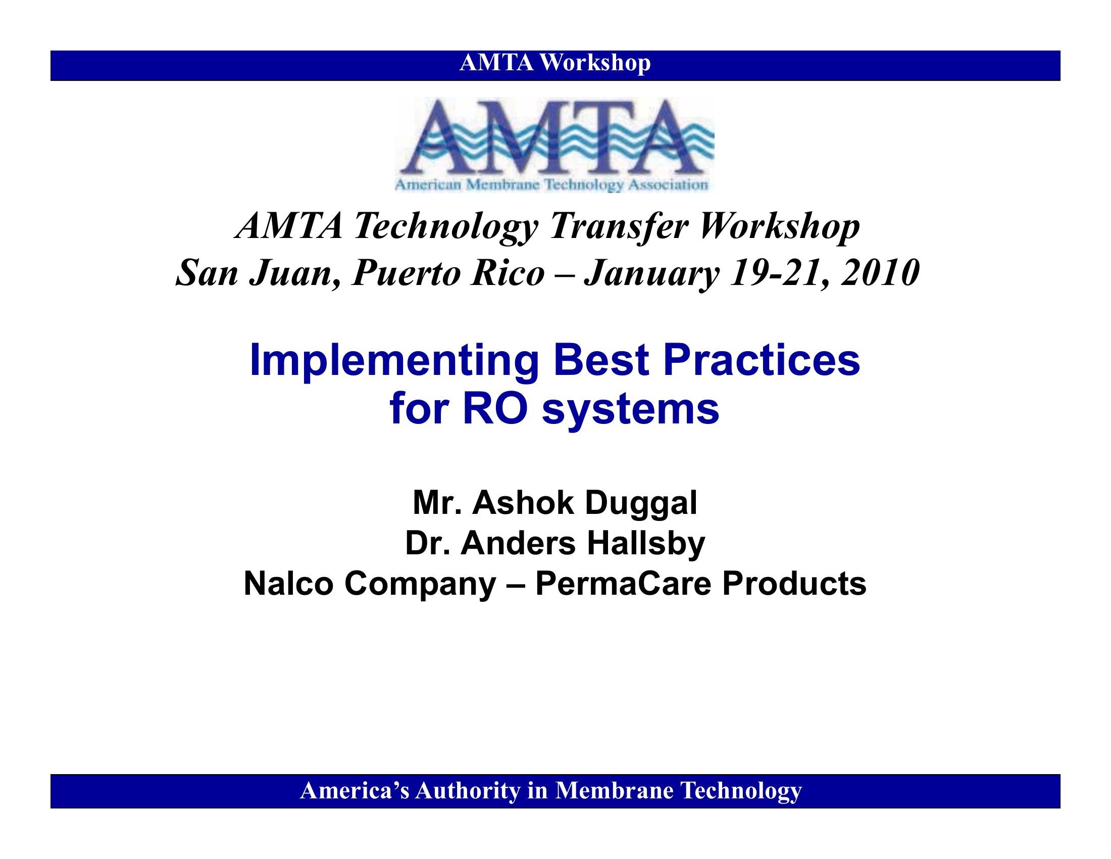 This powerpoint addresses best practices for reverse osmosis membrane systems. Fouling including biological growth, colloidal material, dissolved organics and mineral scale are all addressed.