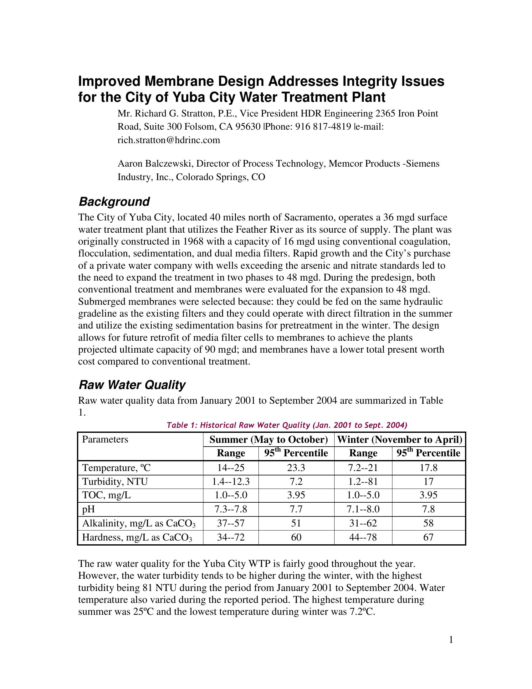 Improved Membrane Design Addresses Integrity Issues for the City of Yuba City Water Treatment Plant