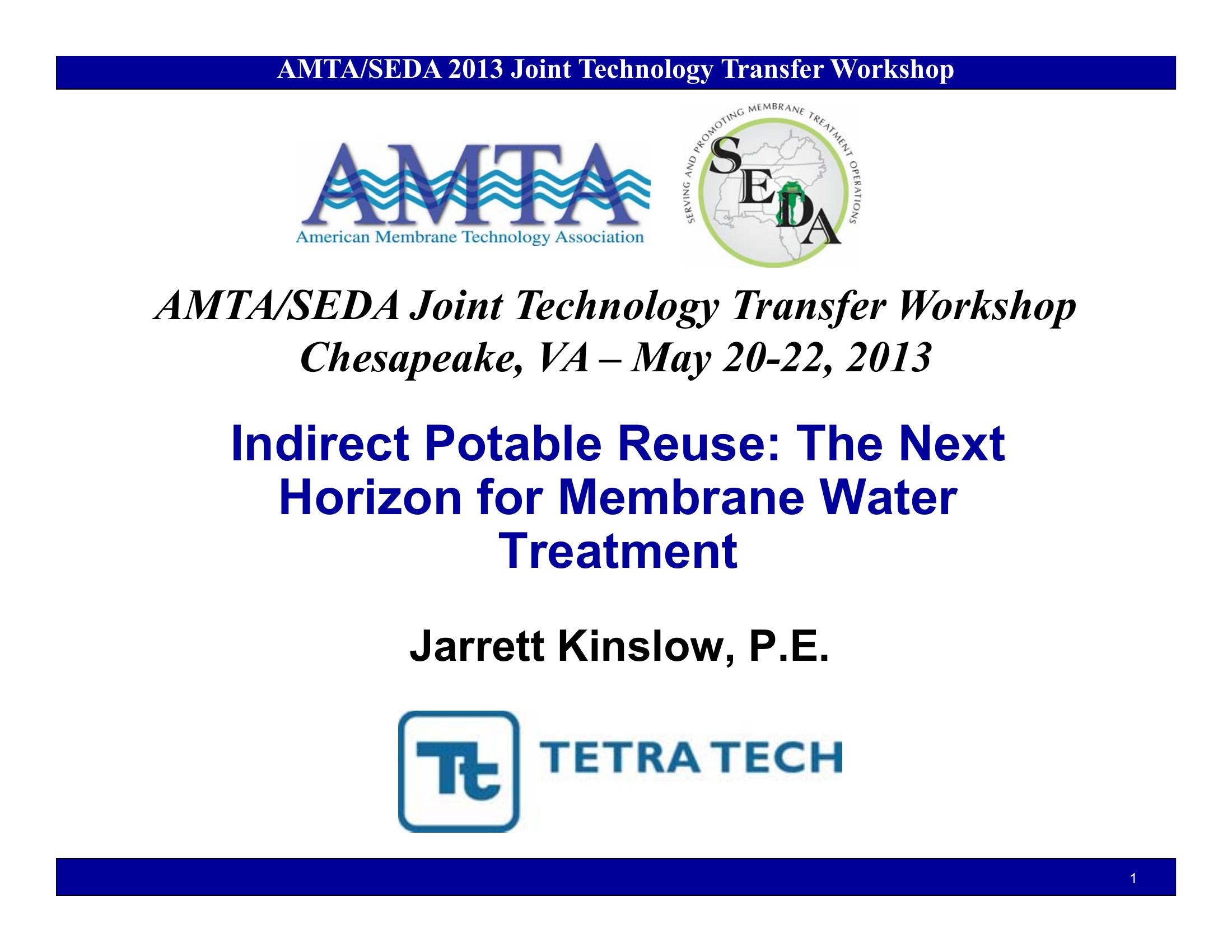 This PowerPoint presentation reviews indirect potable water reuse options and technology.