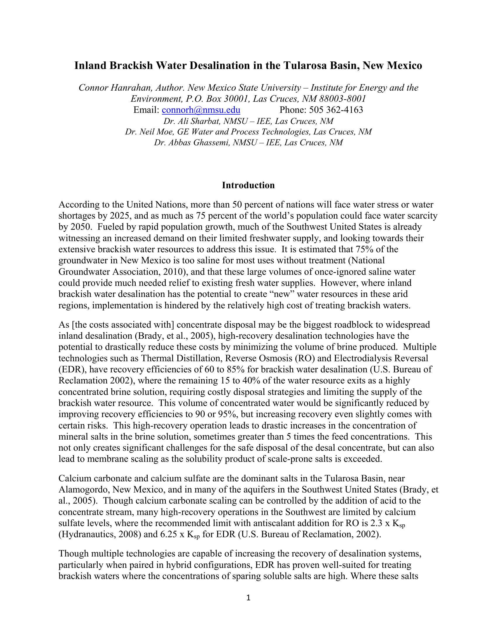 | Keywords | Inland brackish desalination, concentrate disposal, electrodialysis reversal |