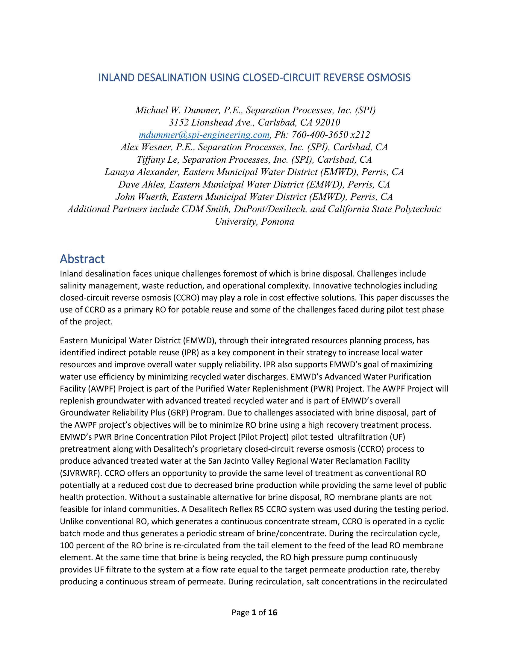 | Keywords | Desalination, closed-circuit, reverse osmosis |