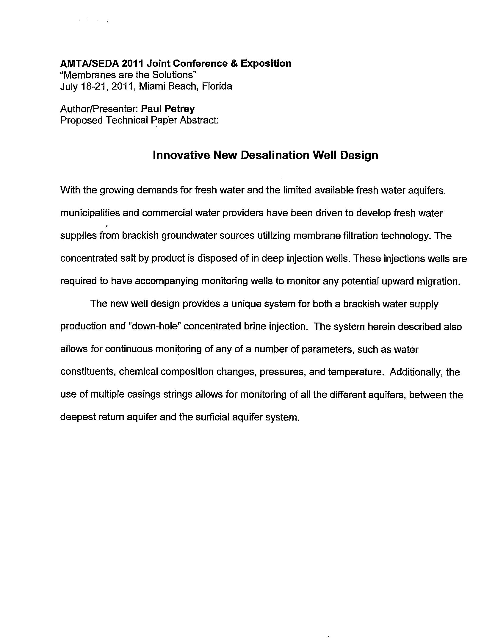 | Keywords | well design, concentrate disposal |