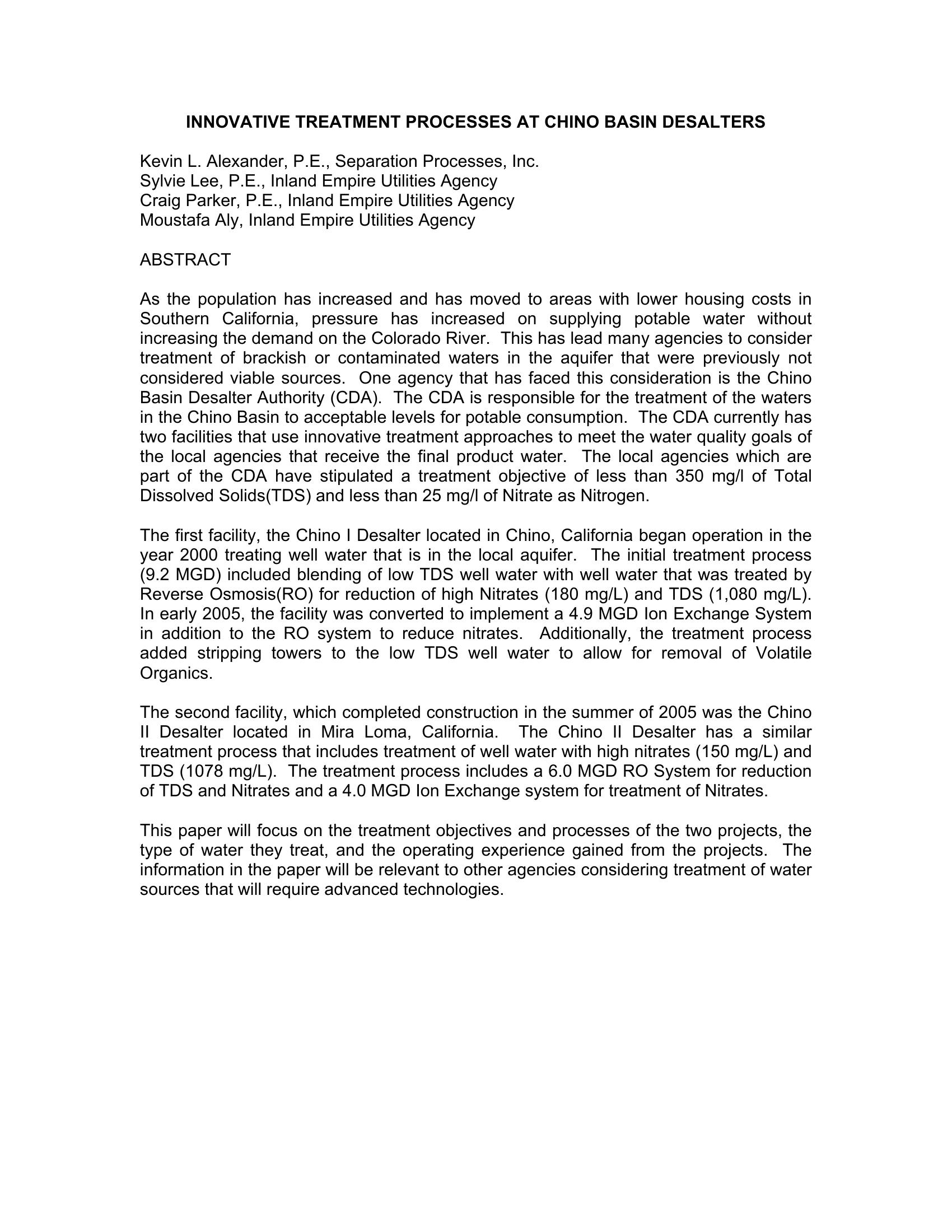 Innovative Treatment Approaches at the Chino Basin Desalters