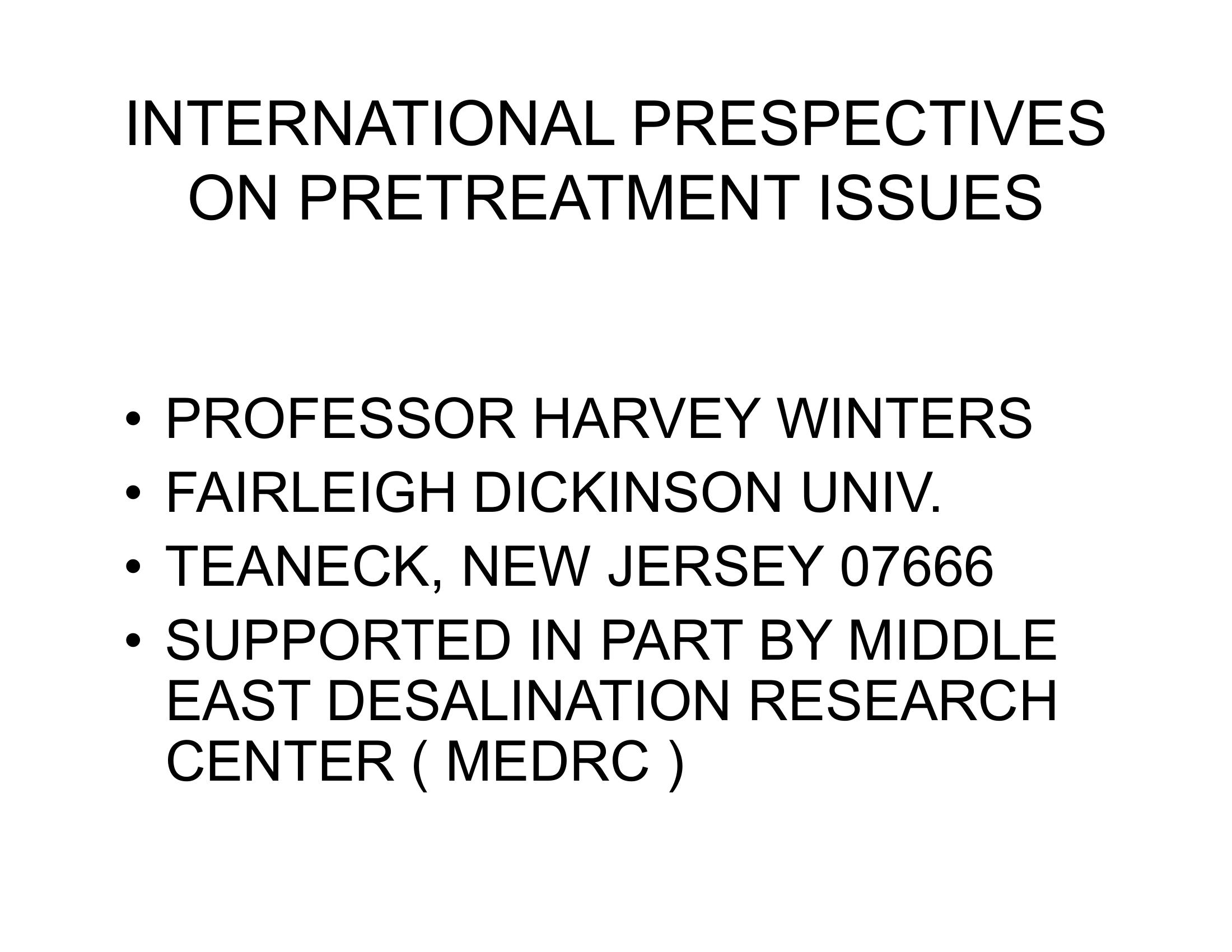 International Perspectives on Pretreatment Issues