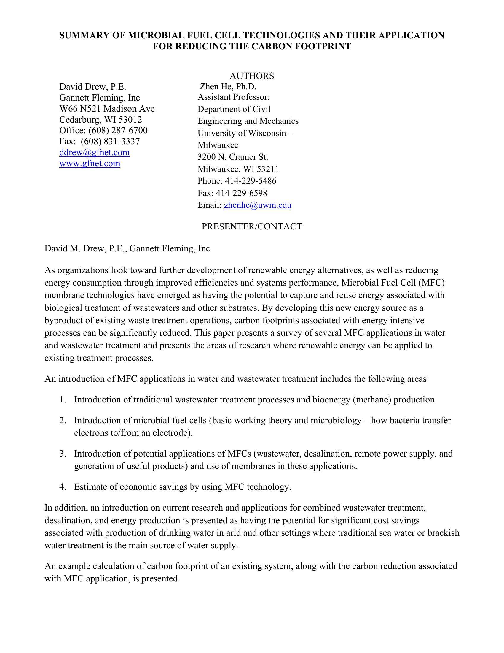 | Keywords | Microbial fuel cell, carbon fooprint |