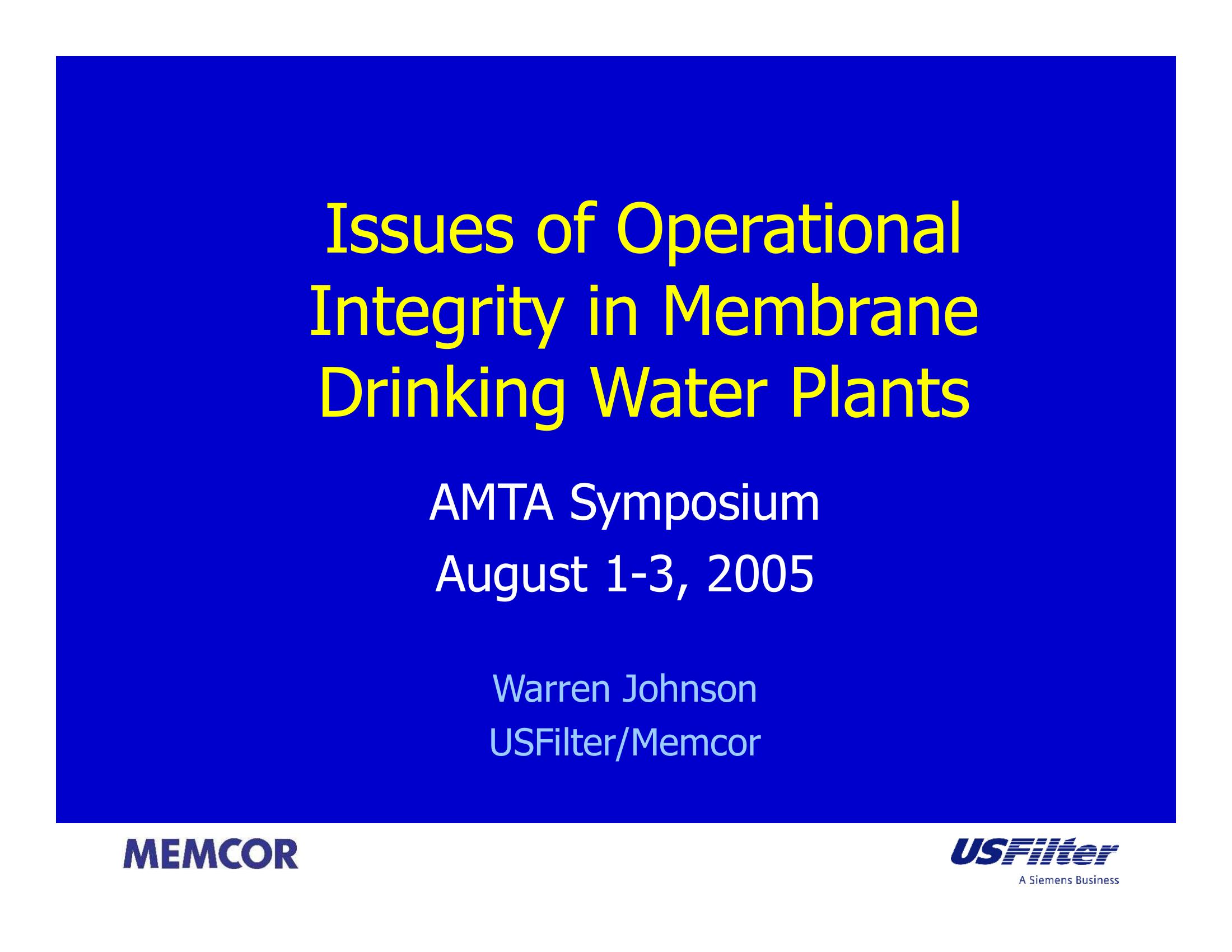 Issues of Operational Integrity in Membrane Drinking Water Plants