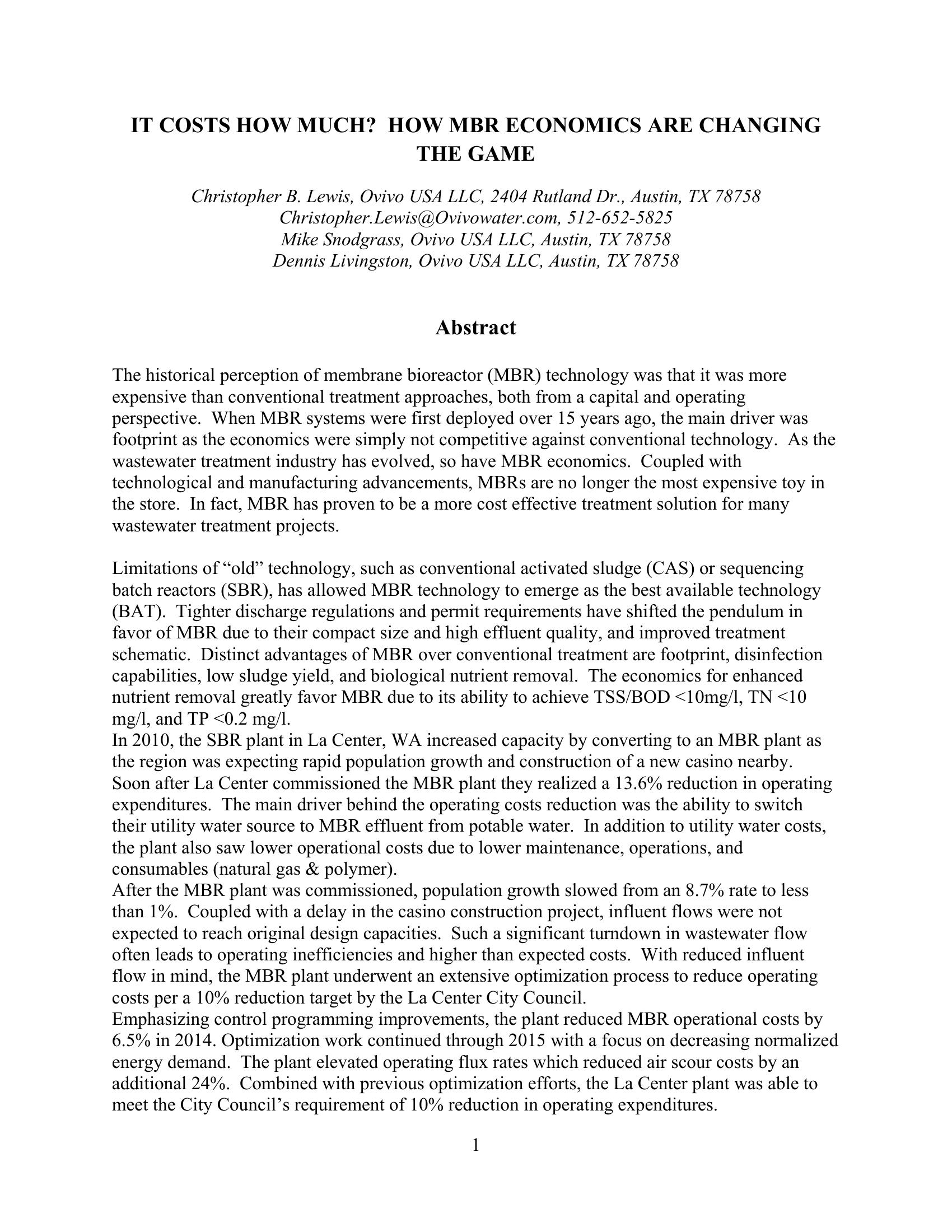 | Keywords | LaCenter, Membrane bioreactor, MBR |