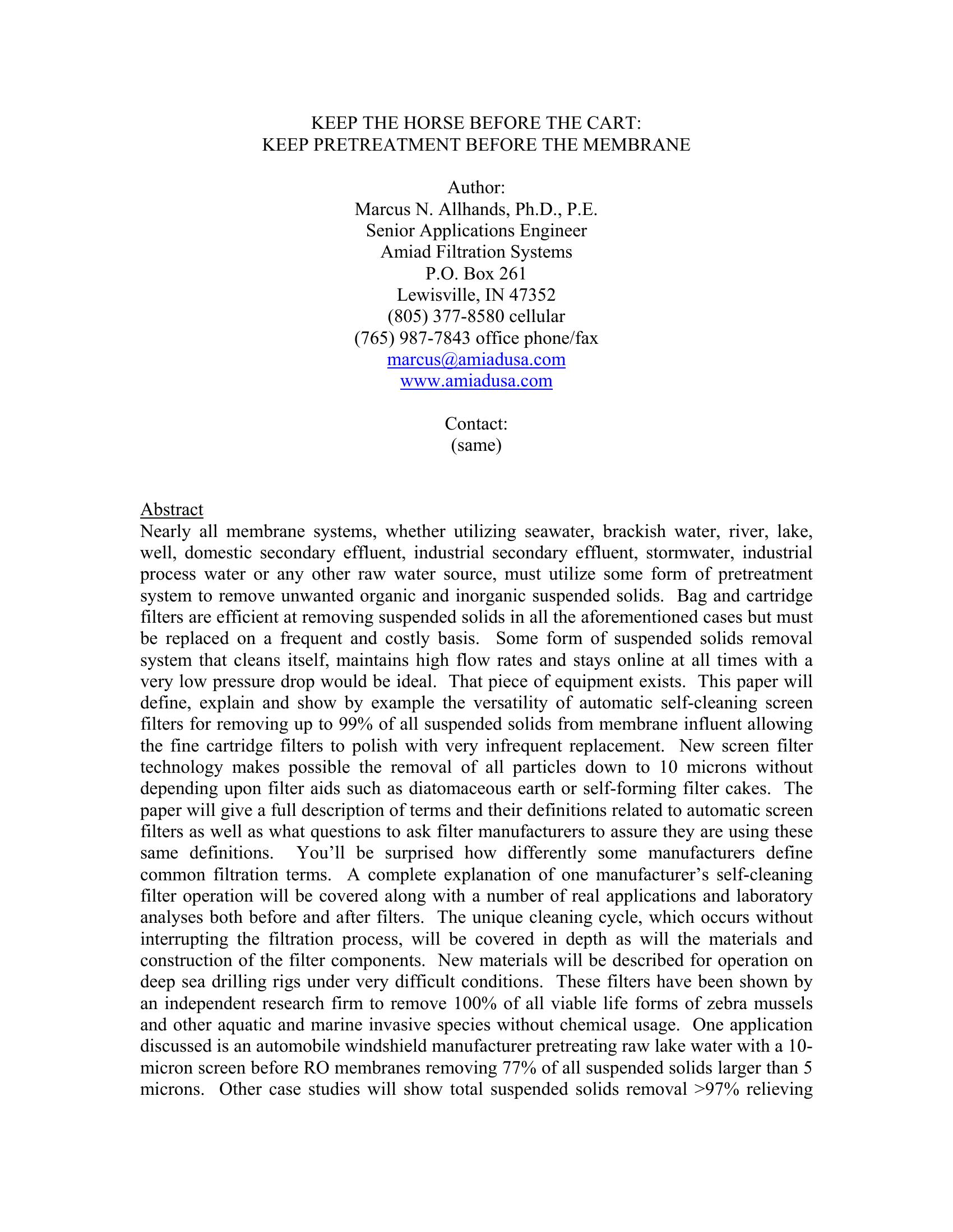 | Keywords | Membrane treatment pretreatment, screen filters |