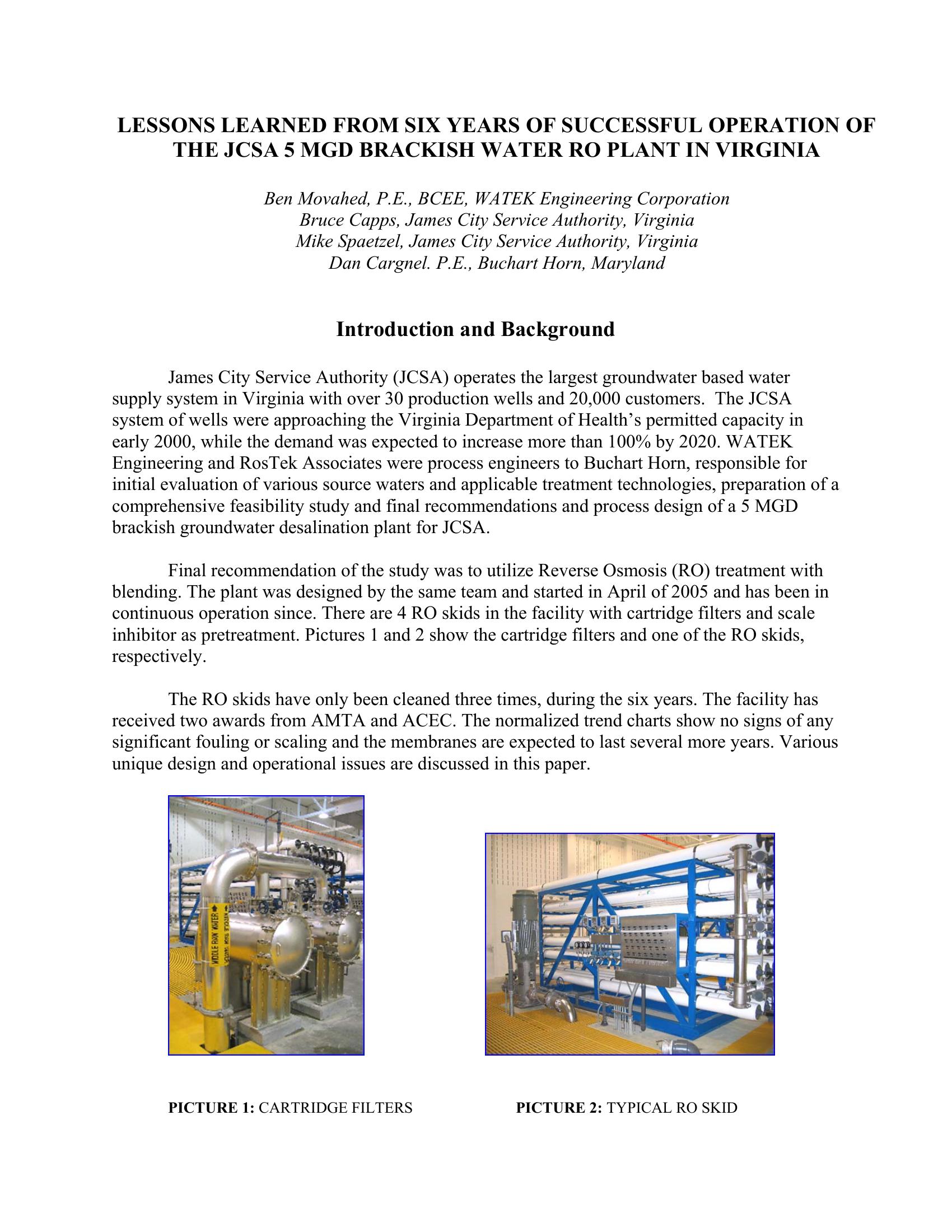 Lessons Learned from Six Years of Successful Operation of the JCSA 5 mgd Brackish Water RO Plant in Virginia