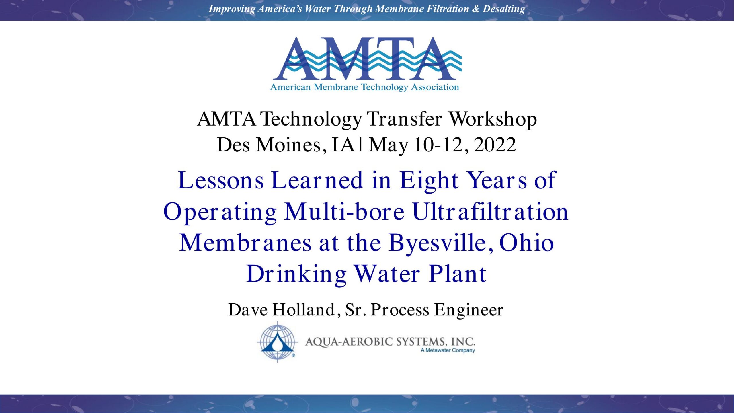 In 2004, the Village of Byesville constructed Ohio’s first microfiltration membrane drinking water plant, designed to treat water from wells inside abandoned coal mines. After five years, the membranes began having integrity issues (fiber breaks), which steadily continued until, in 2014, the membrane trains were replaced with racks containing a unique multi-bore membrane that had a history of very few fiber breaks. Since the new membrane system was placed in operation, the membranes have had very few fiber breaks but the plant has encountered several other issues, including pipe breaks, iron fouling, and high levels of total trihalomethanes (TTHMs). This presentation describes the new membrane, gives the overall membrane performance, and shares the lessons learned.