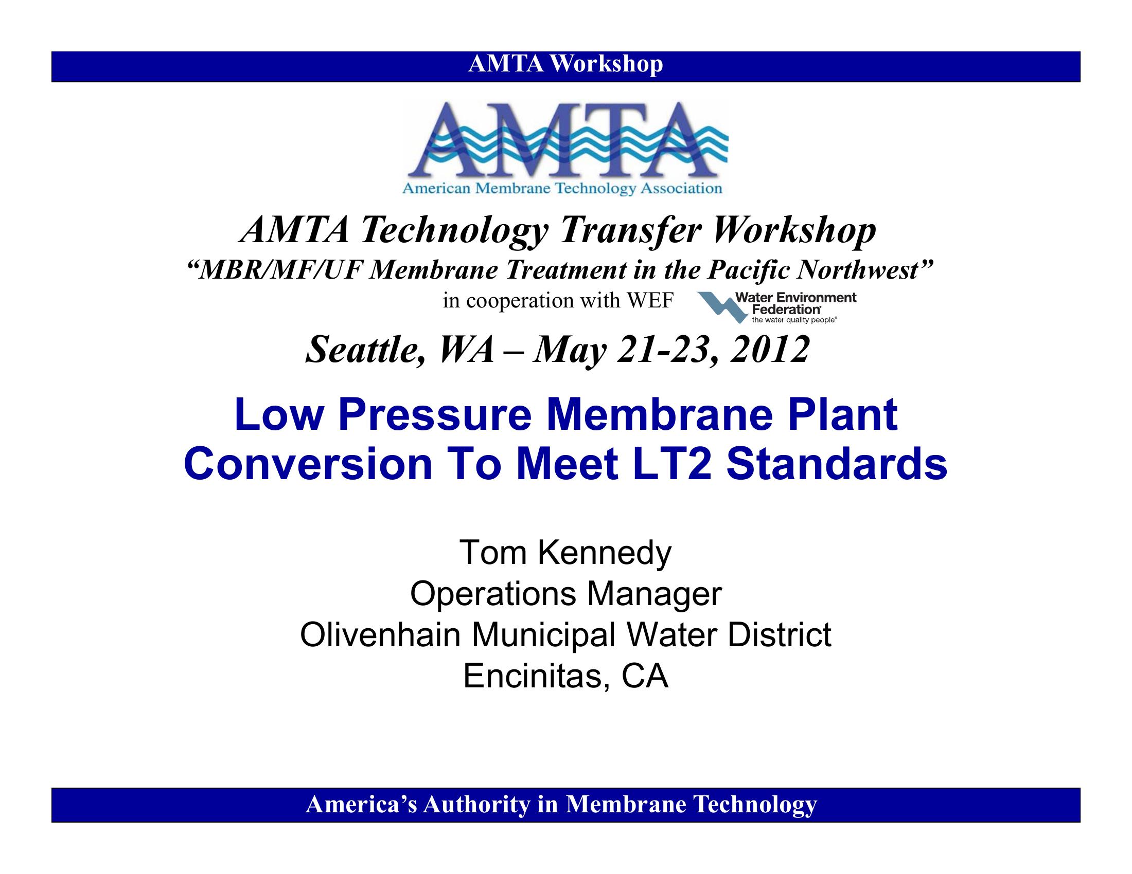 Low Pressure Membrane Plant Conversion to Meet LT2 Standards