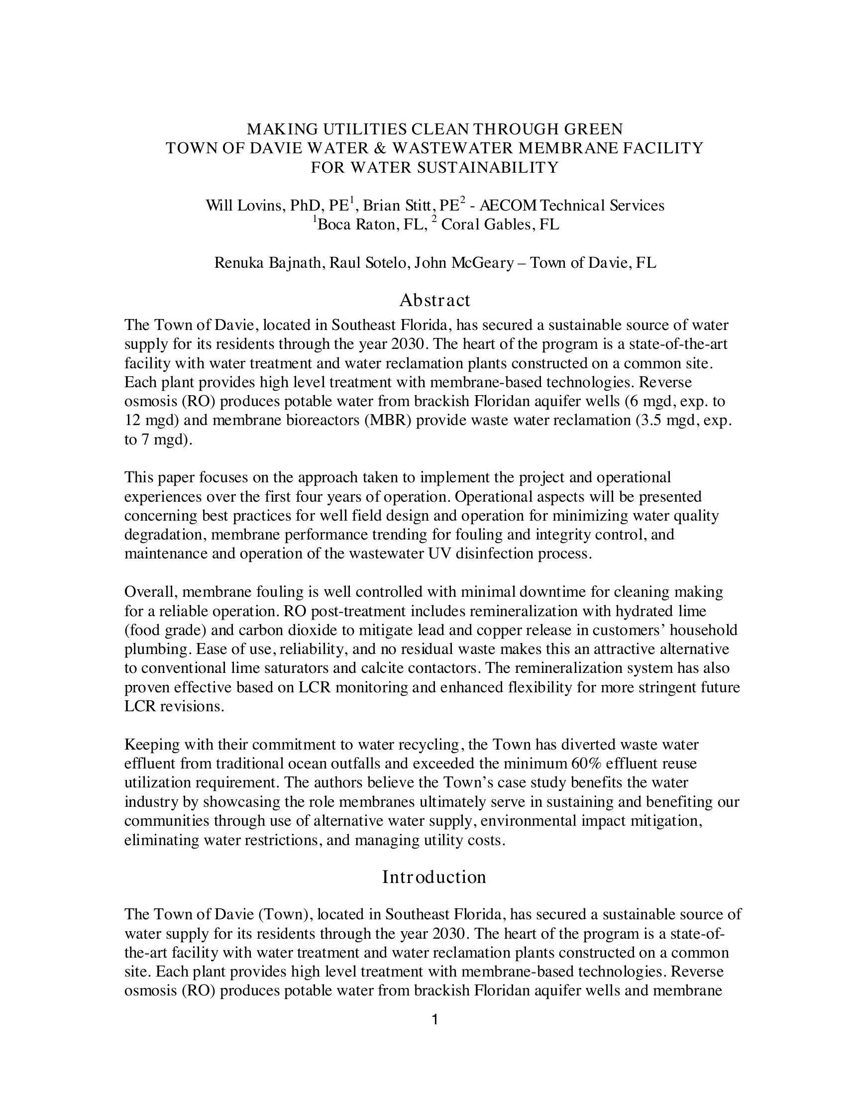 Making Utilities Clean Through Green – Town of Davie Water