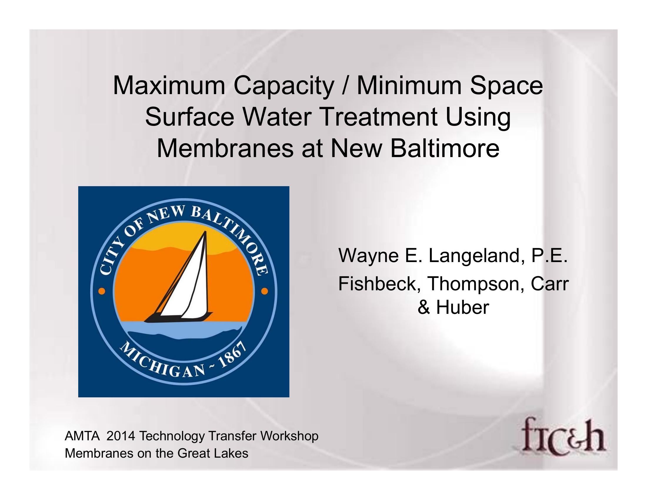 Maximum Capacity/Minimum Space Surface Water Treatment Using Membranes at New Baltimore