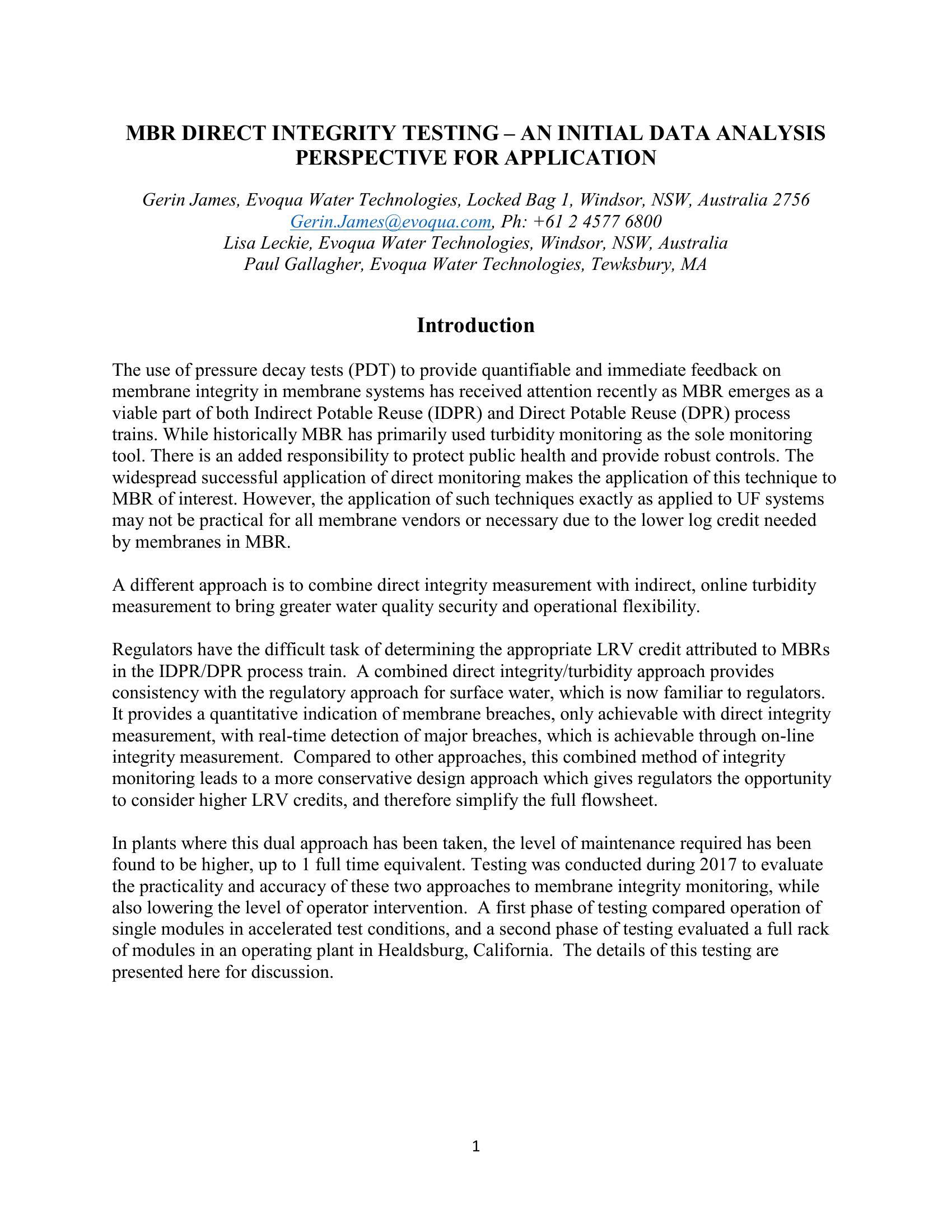 This presentation presents data and application perspective on how to apply a DIT in a MBR setting. It’s value is in presenting a data-driven perspective to the application of DIT in a MBR to be considered as a credible alternative to only turbidity monitoring.