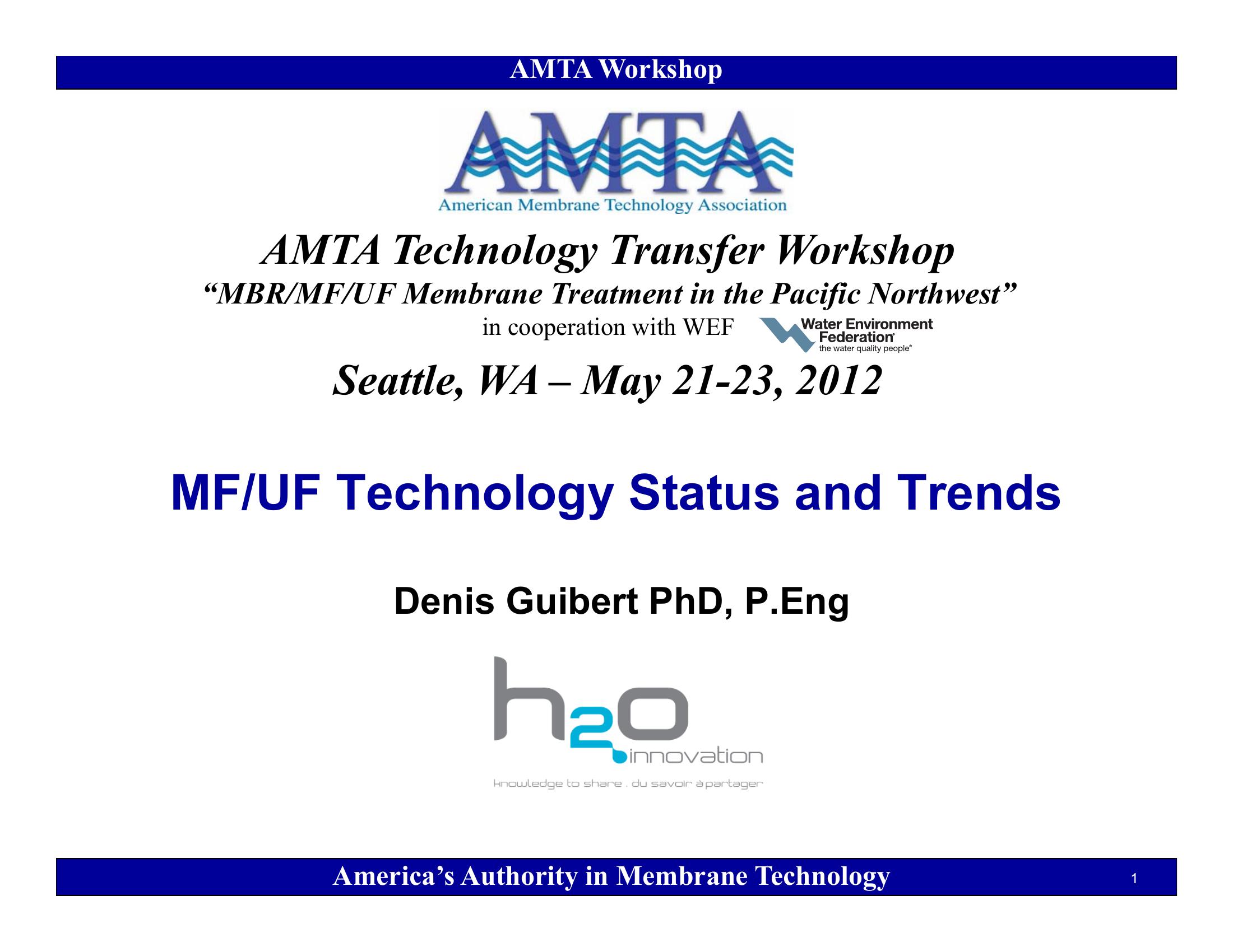 MBR/MF/UF Technology Status and Trends