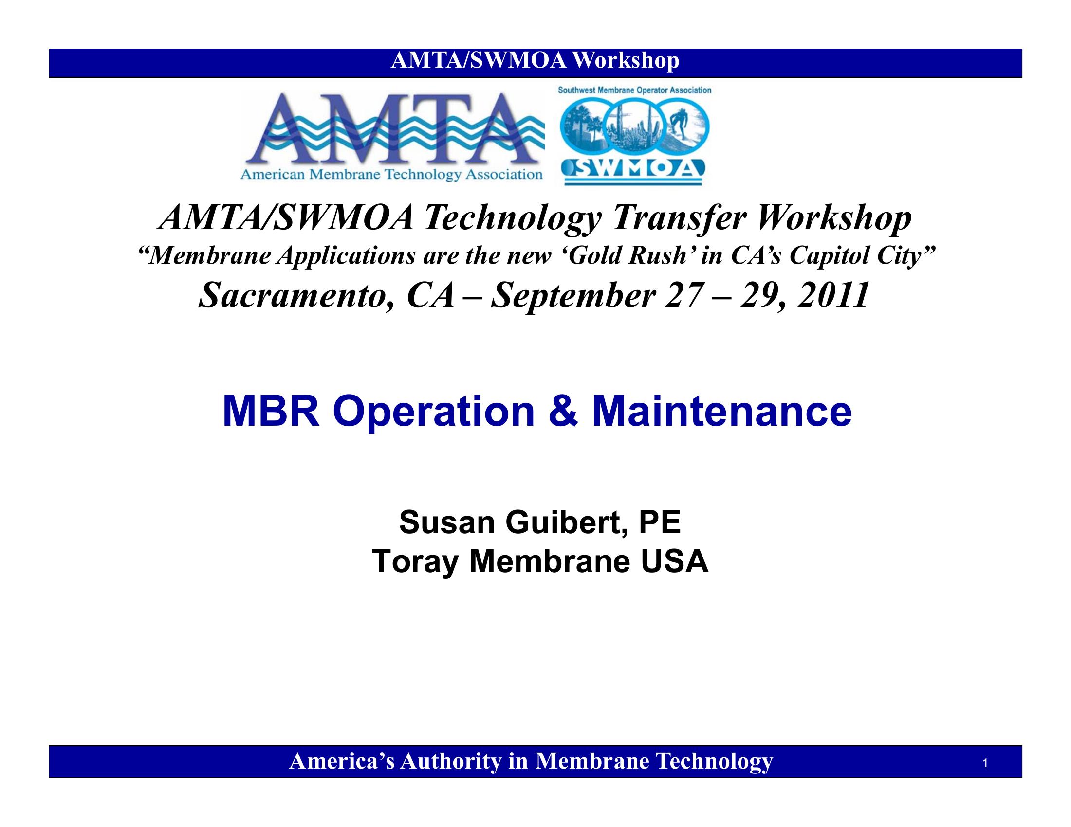 This presentation provides a comprehensive overview of MBR Operation and Maintenance. A basic conceptual review of MBRs is provided and significance of proper mechanical check-out of Pumps, Blowers, air diffusers, instruments and valves as well as proper clearing proper cleaning procedures is emphasized.