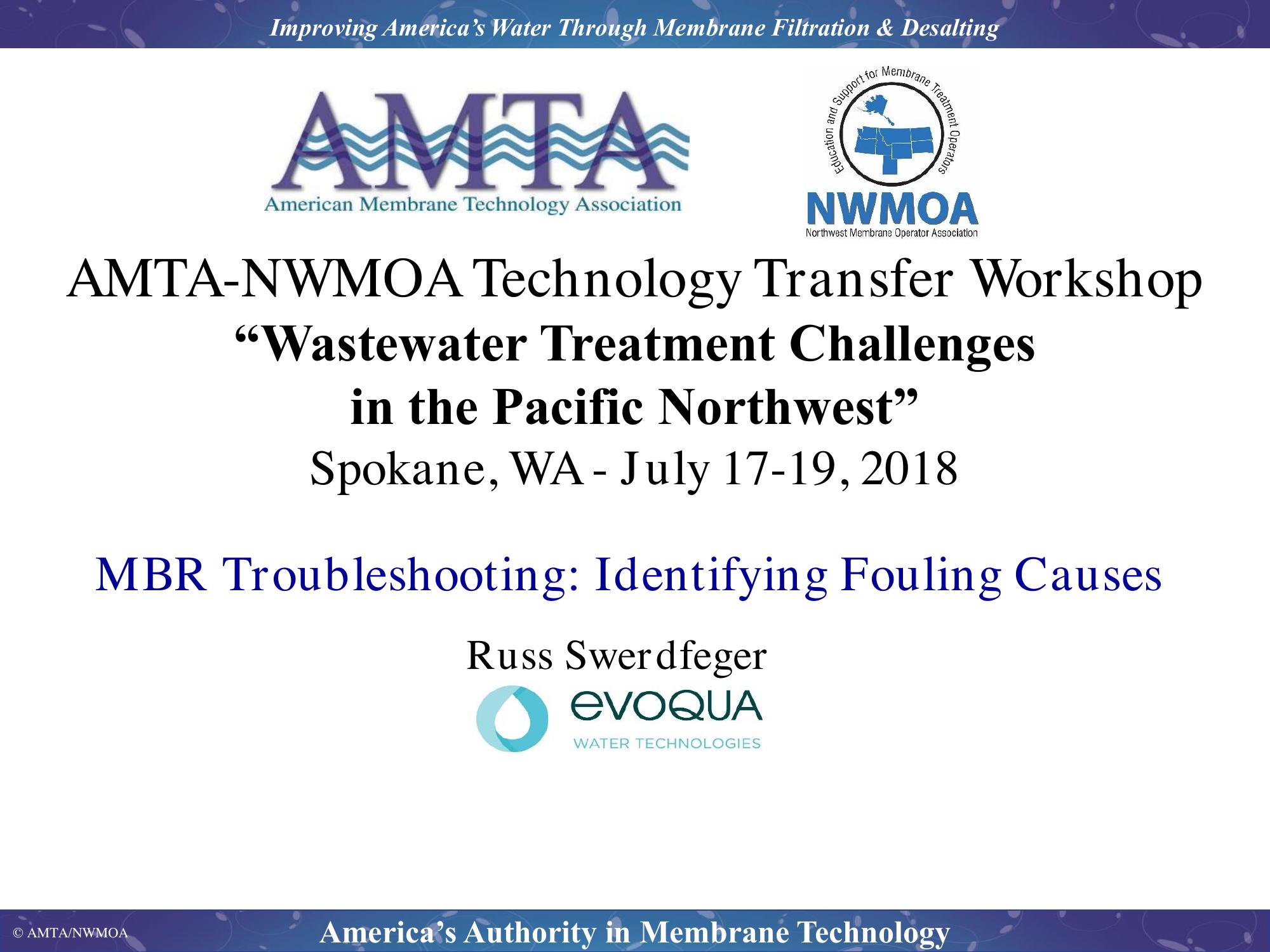 This presentation discusses the causes and solutions for fouling problems with MBR processes. We will review the impact of the biological treatment, influent loads, influent constituents, and ancillary systems have on the MBR process. We will further discuss and present a troubleshooting framework on identifying the source of fouling and how to remedy pre-maturely fouled fouled MBR systems.